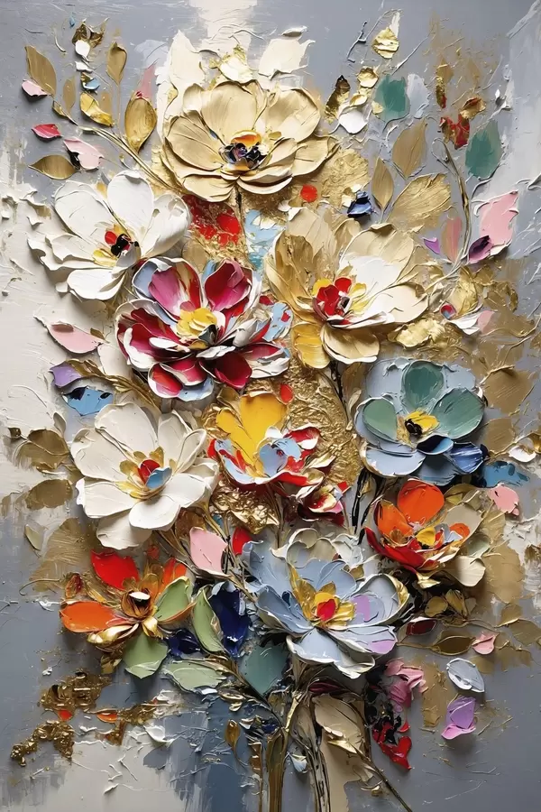Plakatas Gėlių kompozicija „Impasto“ stiliumi su reljefiniais žiedlapiais f48832