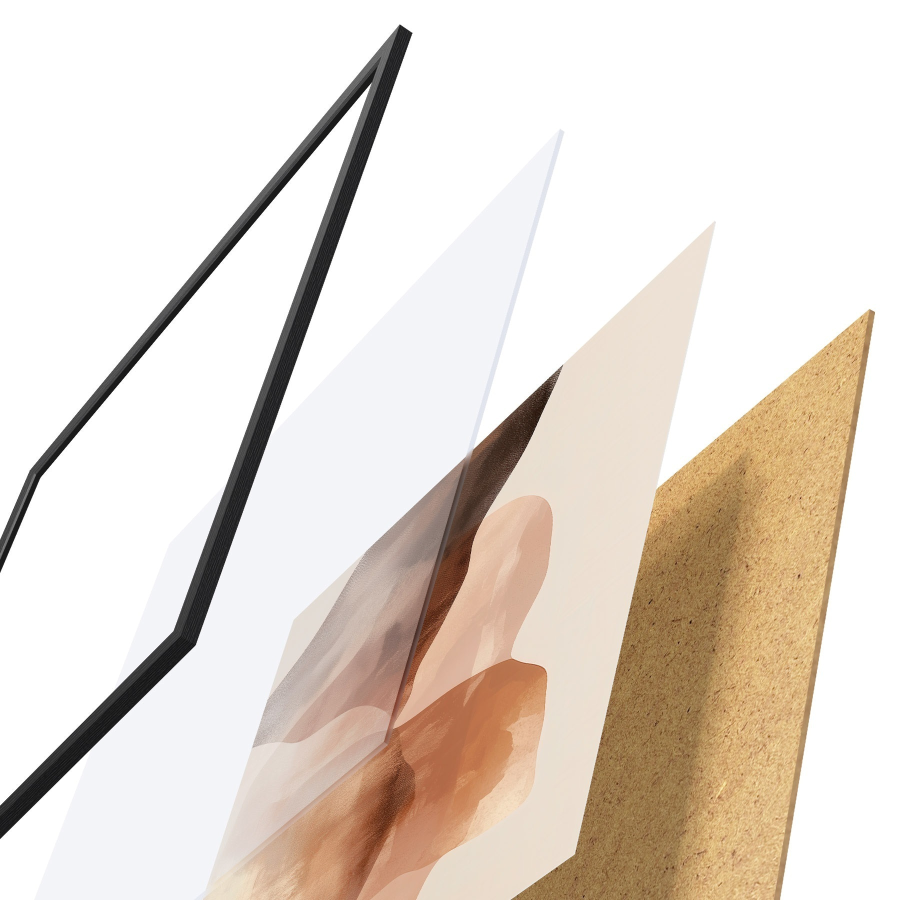 Plakatą sudaro rėmas, pleksiklas, atspausdintas vaizdas ir medžio drožlių plokštės pagrindas. Plakatą galima iš karto pakabinti ant sienos dėl kitoje pusėje esančių laikiklių.