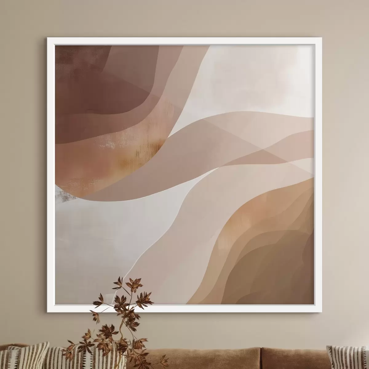 Plakatas Abstrakčios banguotos formos kavos-smėlio spalvų paletėje f48836