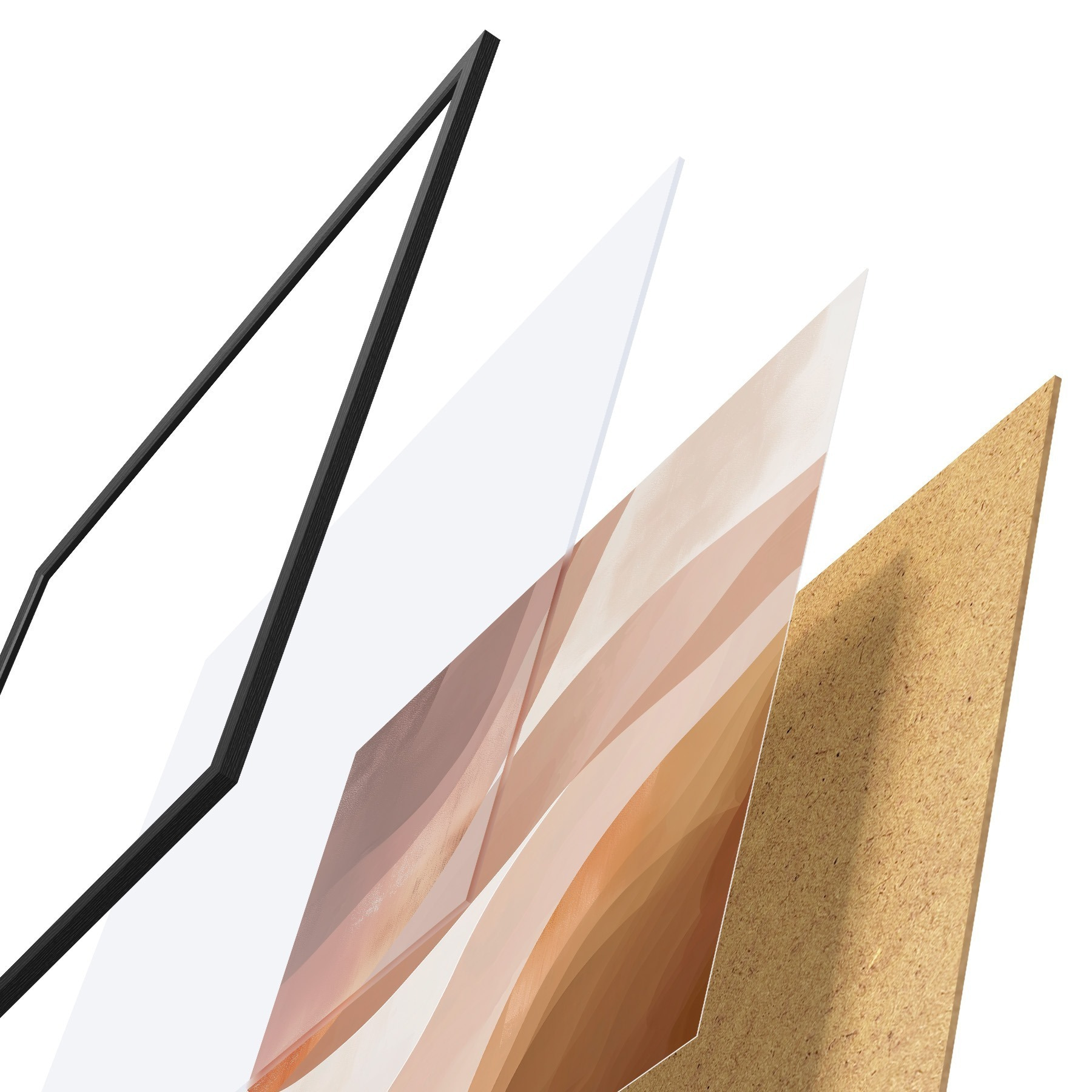 Plakatą sudaro rėmas, pleksiklas, atspausdintas vaizdas ir medžio drožlių plokštės pagrindas. Plakatą galima iš karto pakabinti ant sienos dėl kitoje pusėje esančių laikiklių.