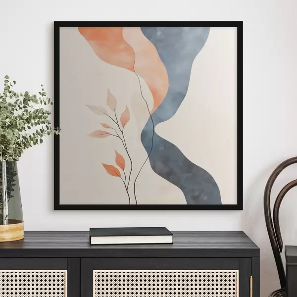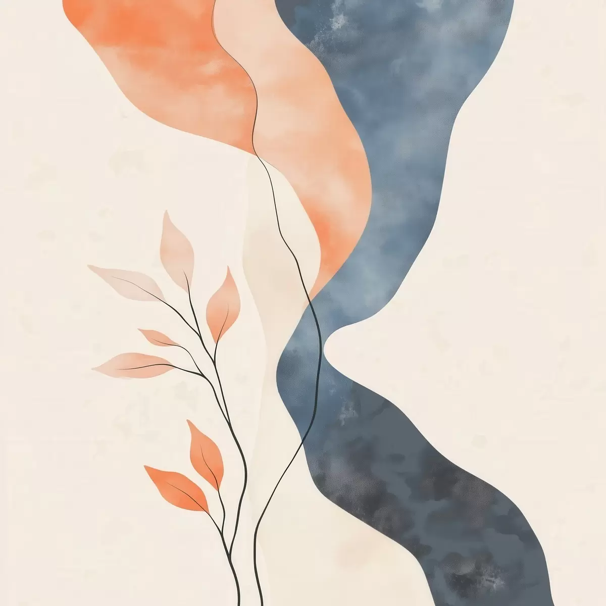 Plakatas Gėlių kompozicija su banguotomis linijomis mėlynos ir oranžinės spalvų paletėje Ne f48837