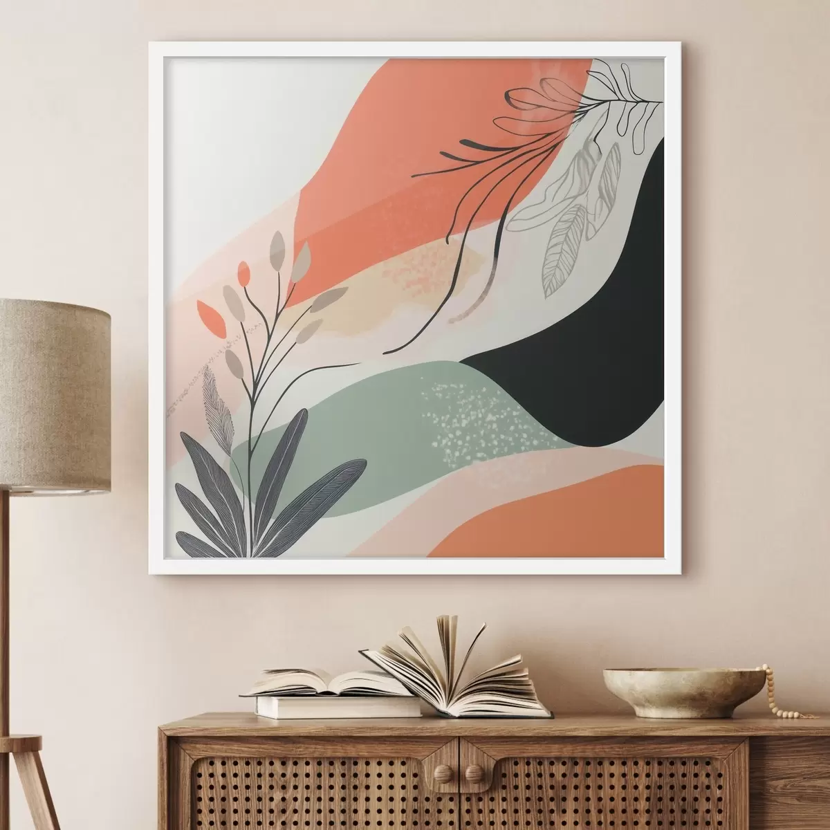 Plakatas Stilizuoti augalų motyvai ant akvarelės dėmių fono f48839