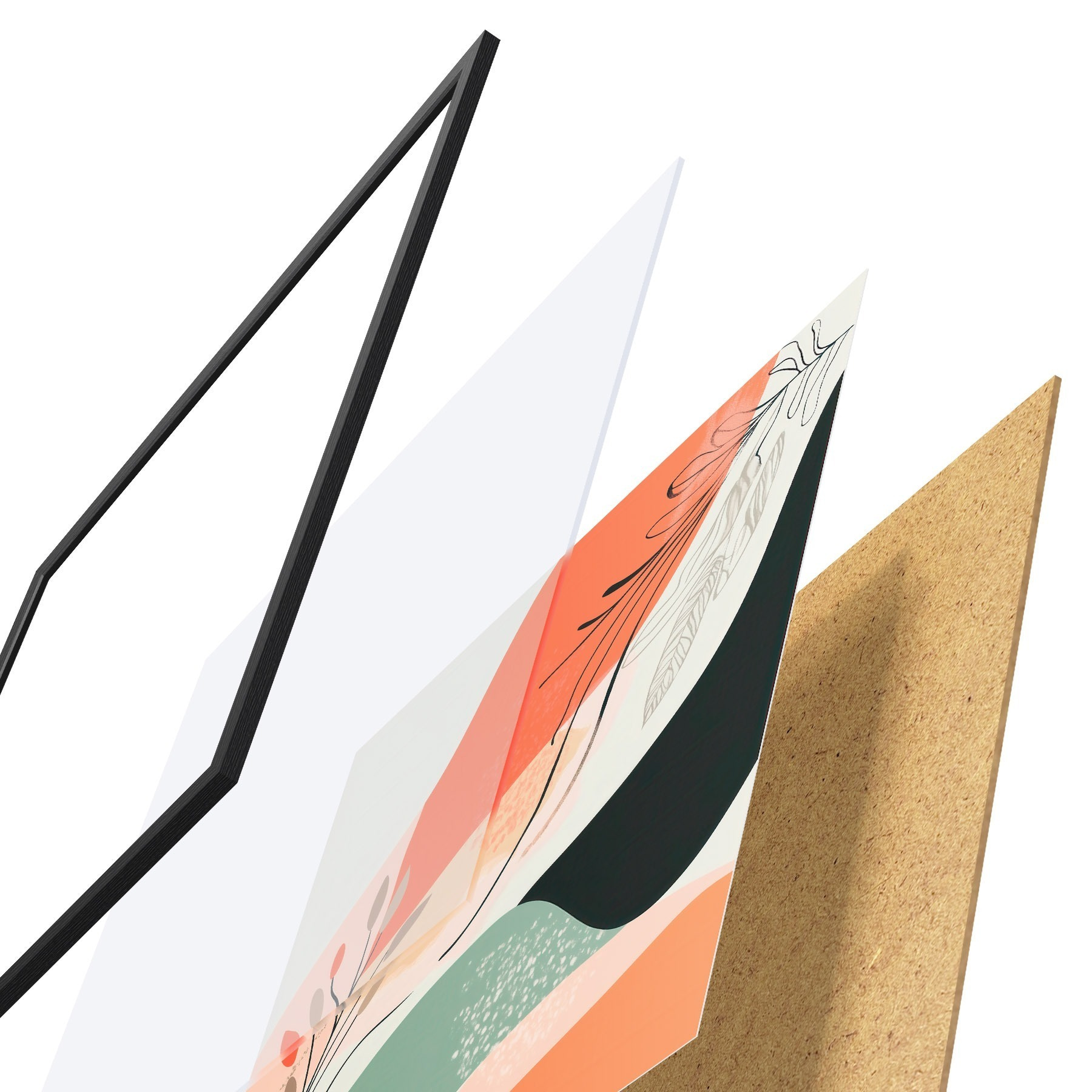 Plakatą sudaro rėmas, pleksiklas, atspausdintas vaizdas ir medžio drožlių plokštės pagrindas. Plakatą galima iš karto pakabinti ant sienos dėl kitoje pusėje esančių laikiklių.