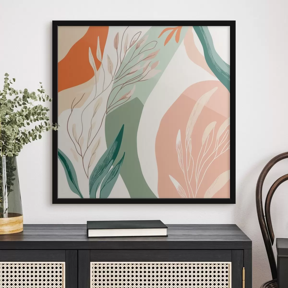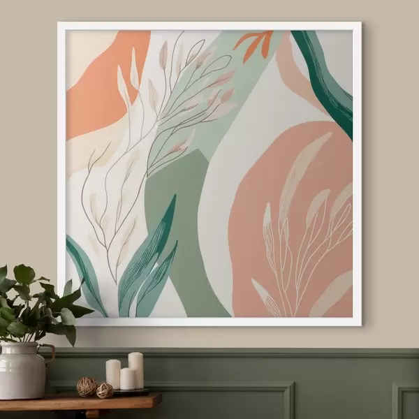 Plakatas Botaninis menas su švelniomis formomis koralų žalios spalvų paletėje f48840