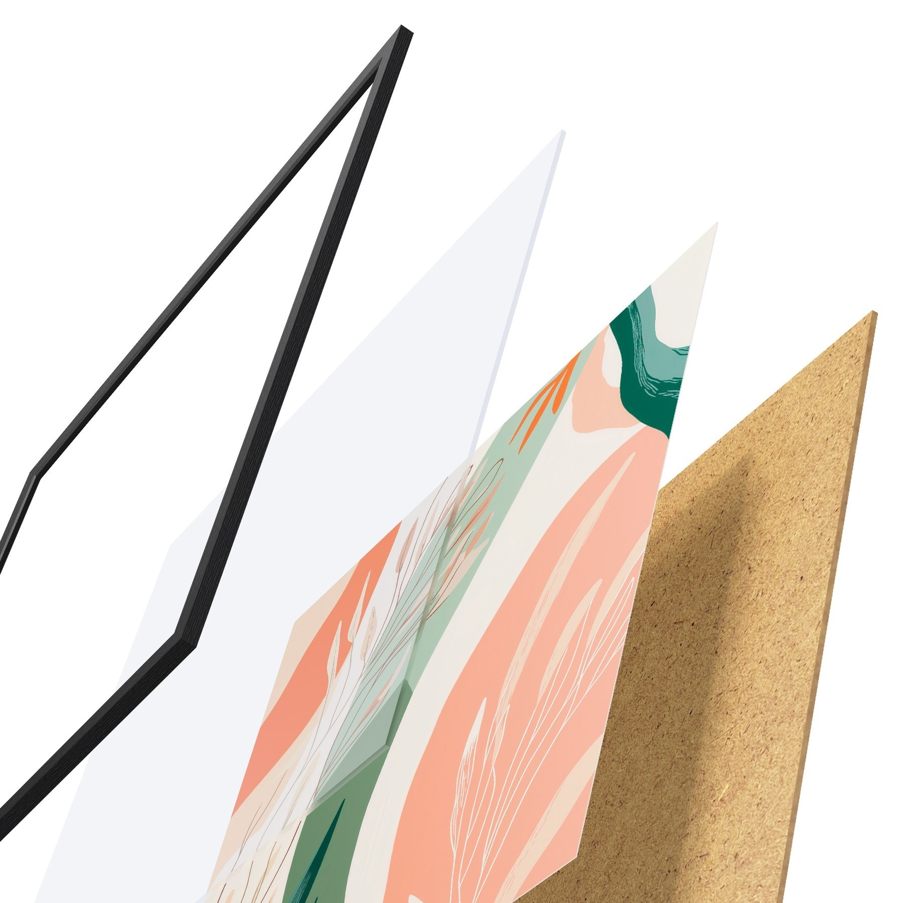 Plakatą sudaro rėmas, pleksiklas, atspausdintas vaizdas ir medžio drožlių plokštės pagrindas. Plakatą galima iš karto pakabinti ant sienos dėl kitoje pusėje esančių laikiklių.