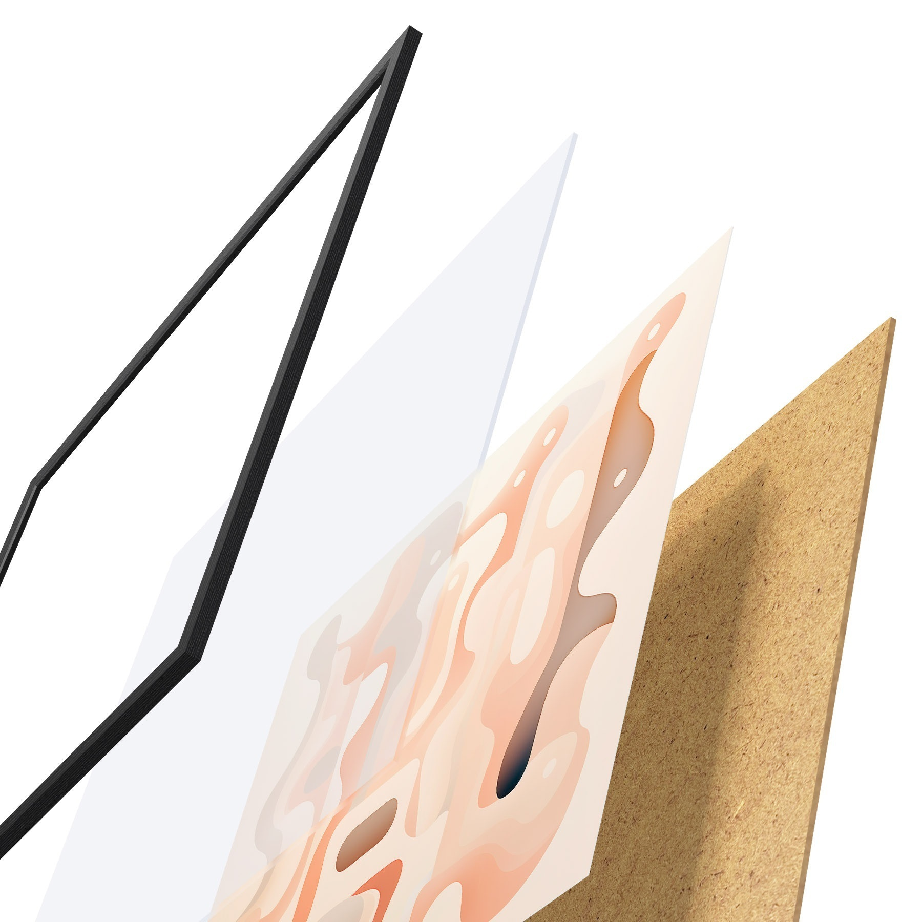Plakatą sudaro rėmas, pleksiklas, atspausdintas vaizdas ir medžio drožlių plokštės pagrindas. Plakatą galima iš karto pakabinti ant sienos dėl kitoje pusėje esančių laikiklių.