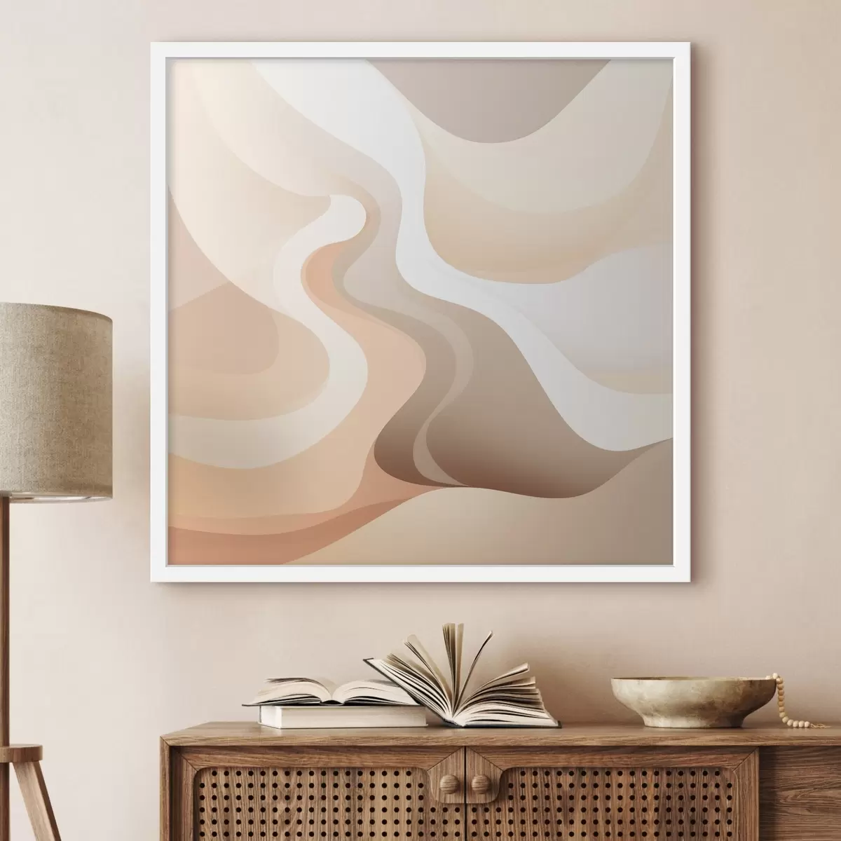 Plakatas Išlenktų formų ir kreminių atspalvių harmonija šiuolaikinio meno iliustracijų stiliumi f48846