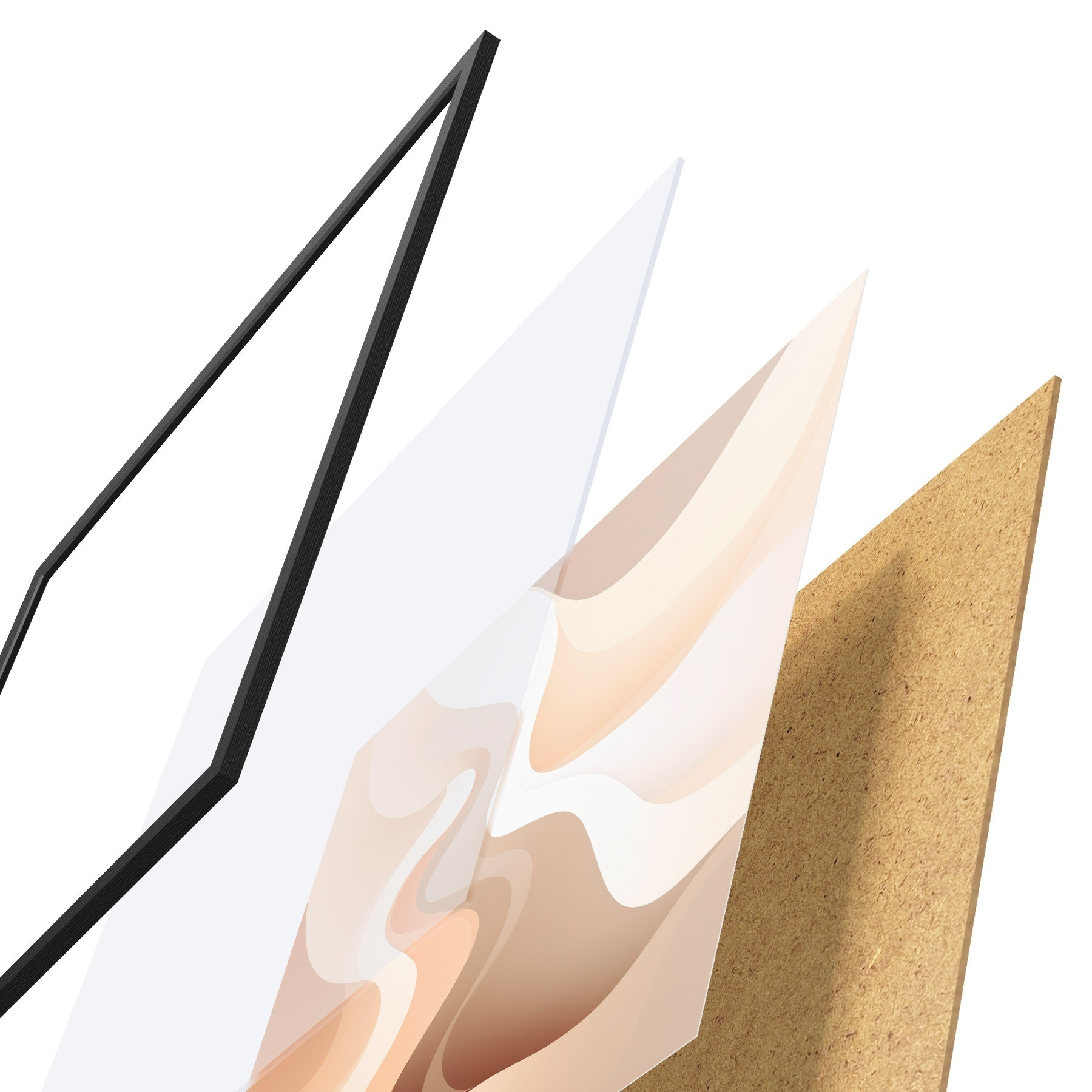 Plakatą sudaro rėmas, pleksiklas, atspausdintas vaizdas ir medžio drožlių plokštės pagrindas. Plakatą galima iš karto pakabinti ant sienos dėl kitoje pusėje esančių laikiklių.