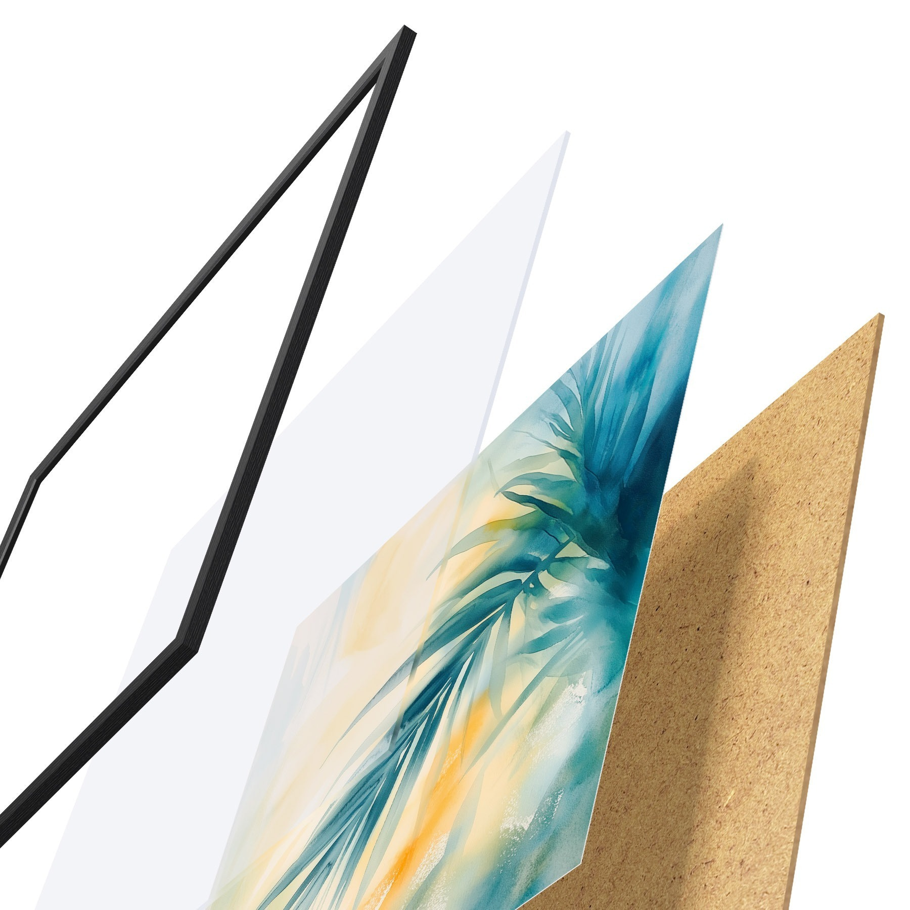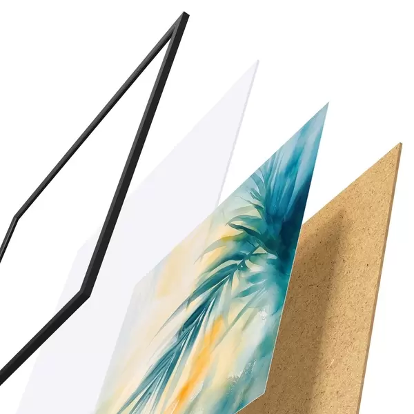 Plakatą sudaro rėmas, pleksiklas, atspausdintas vaizdas ir medžio drožlių plokštės pagrindas. Plakatą galima iš karto pakabinti ant sienos dėl kitoje pusėje esančių laikiklių.