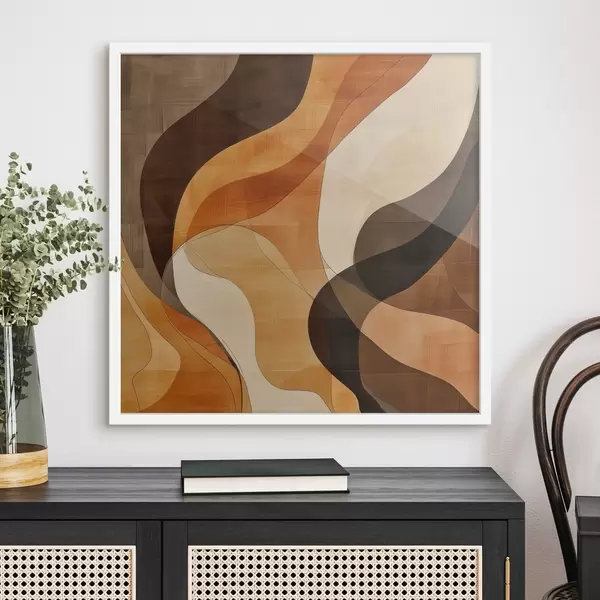 Plakatas Abstrakti kompozicija su dinamiškomis banguotomis linijomis terakotos rudos spalvų paletėje f48851