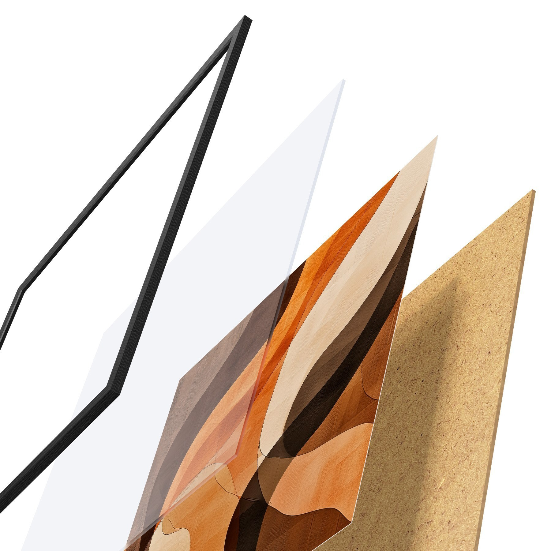 Plakatą sudaro rėmas, pleksiklas, atspausdintas vaizdas ir medžio drožlių plokštės pagrindas. Plakatą galima iš karto pakabinti ant sienos dėl kitoje pusėje esančių laikiklių.