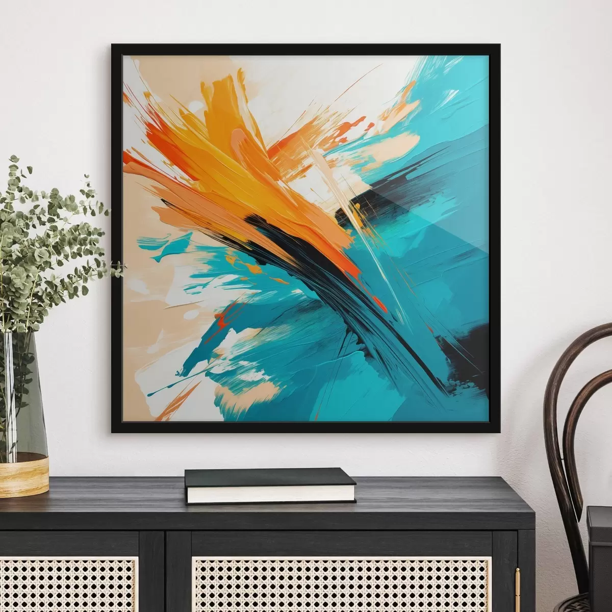Plakatas Ryškus vaizdas, nutapytas šiuolaikiniu stiliumi, naudojant turkio ir terakotos spalvų paletę Ne f48855