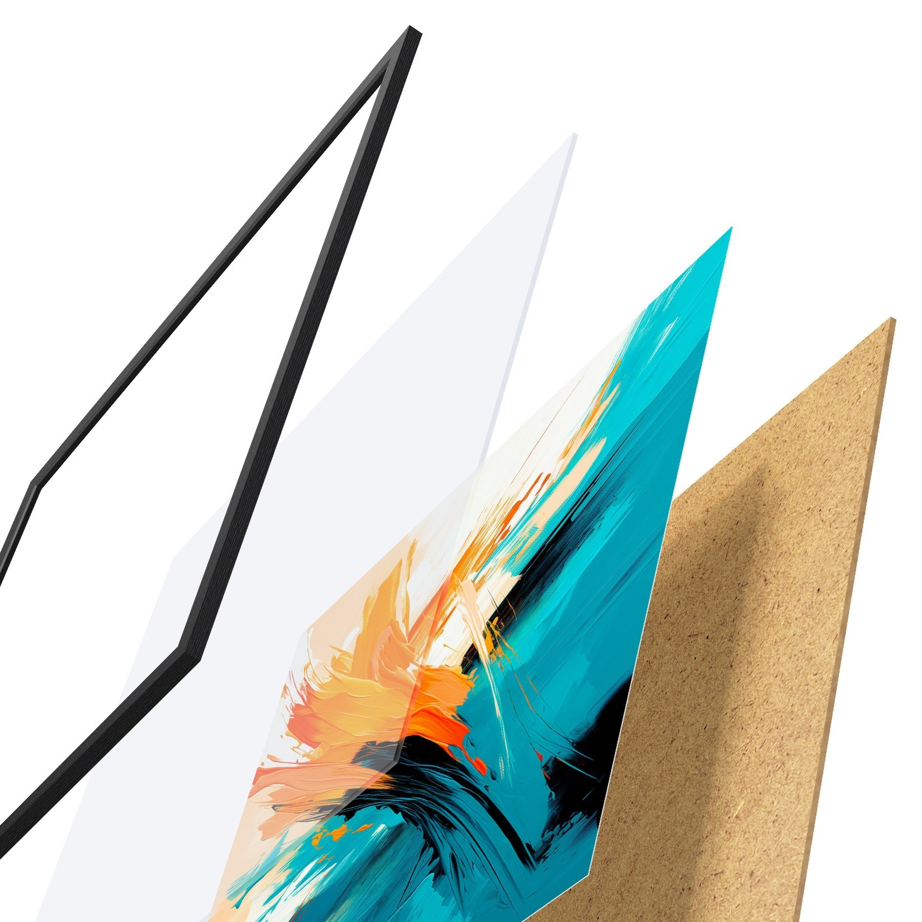 Plakatą sudaro rėmas, pleksiklas, atspausdintas vaizdas ir medžio drožlių plokštės pagrindas. Plakatą galima iš karto pakabinti ant sienos dėl kitoje pusėje esančių laikiklių.
