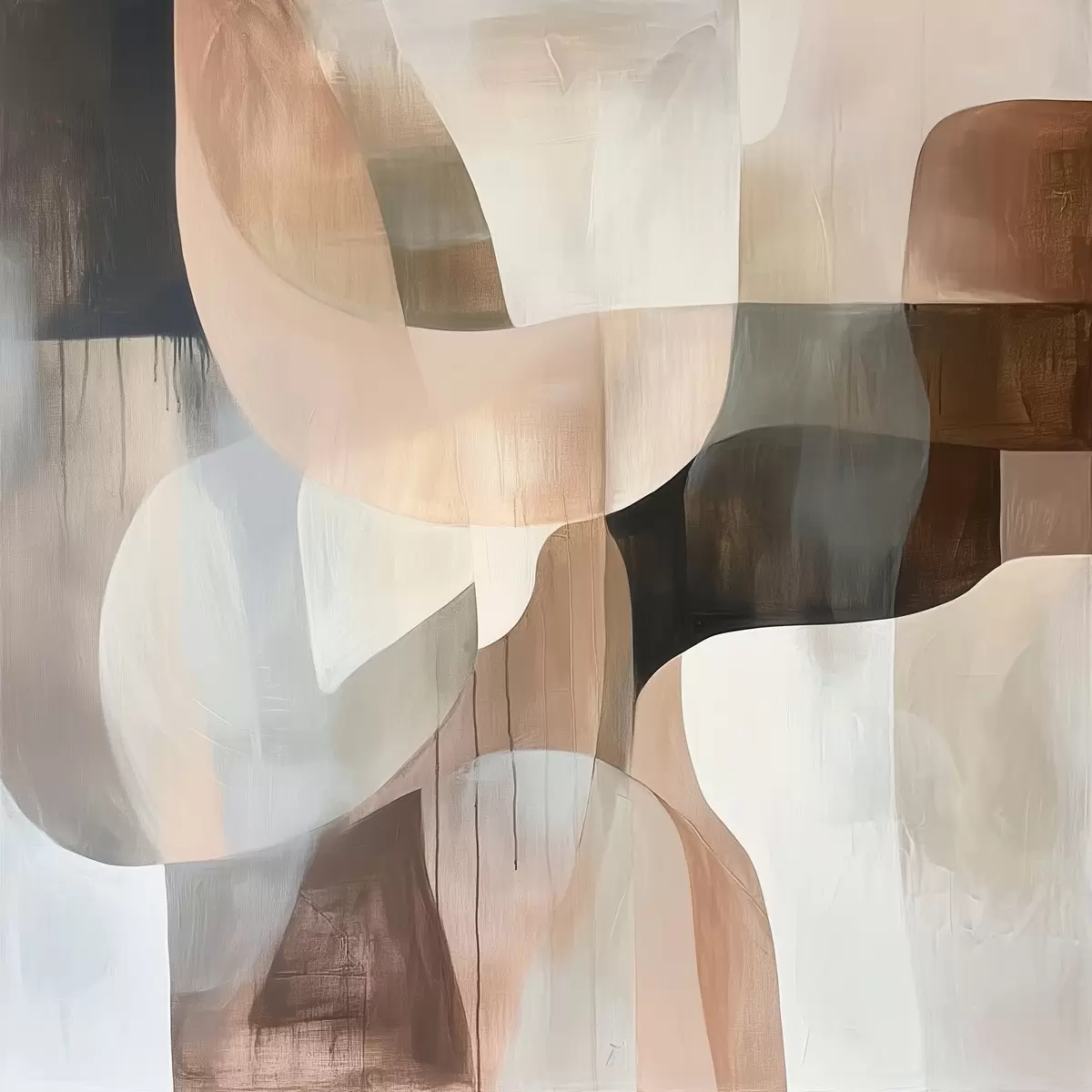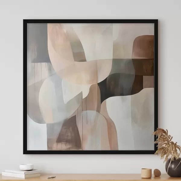Plakatas Abstrakčioji kompozicija šiltų smėlio ir koralų atspalvių paletėje f48859