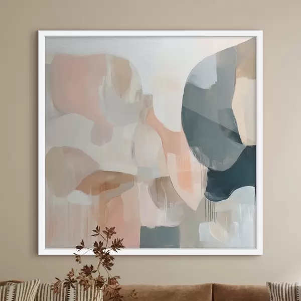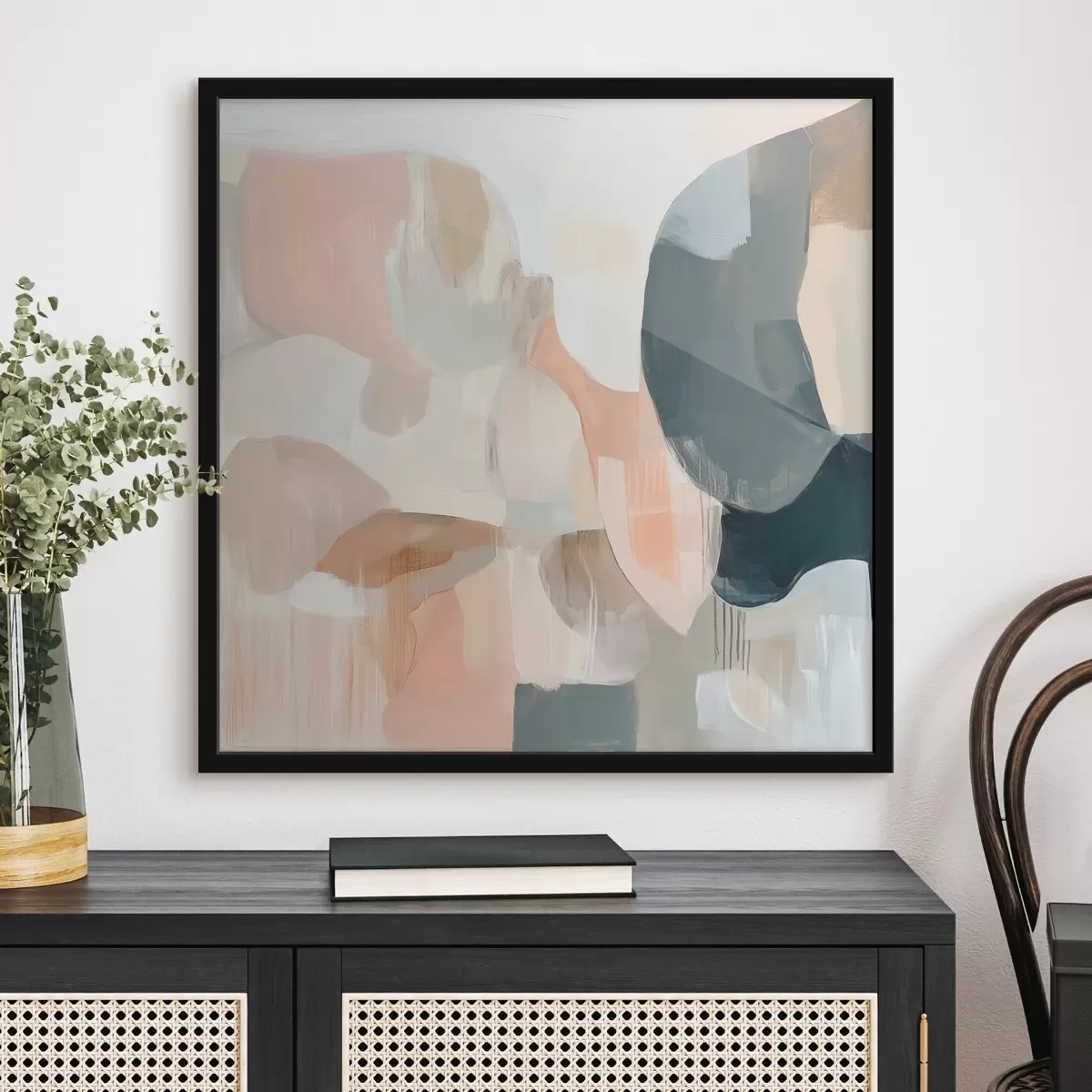 Plakatas Abstrakčioji kompozicija pastelinėmis ir tamsiai mėlynomis spalvomis, atlikta šiuolaikinio tapybos stiliaus f48860