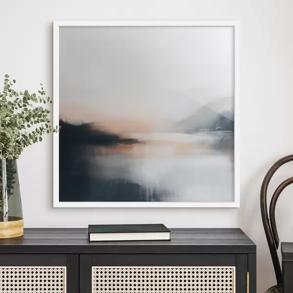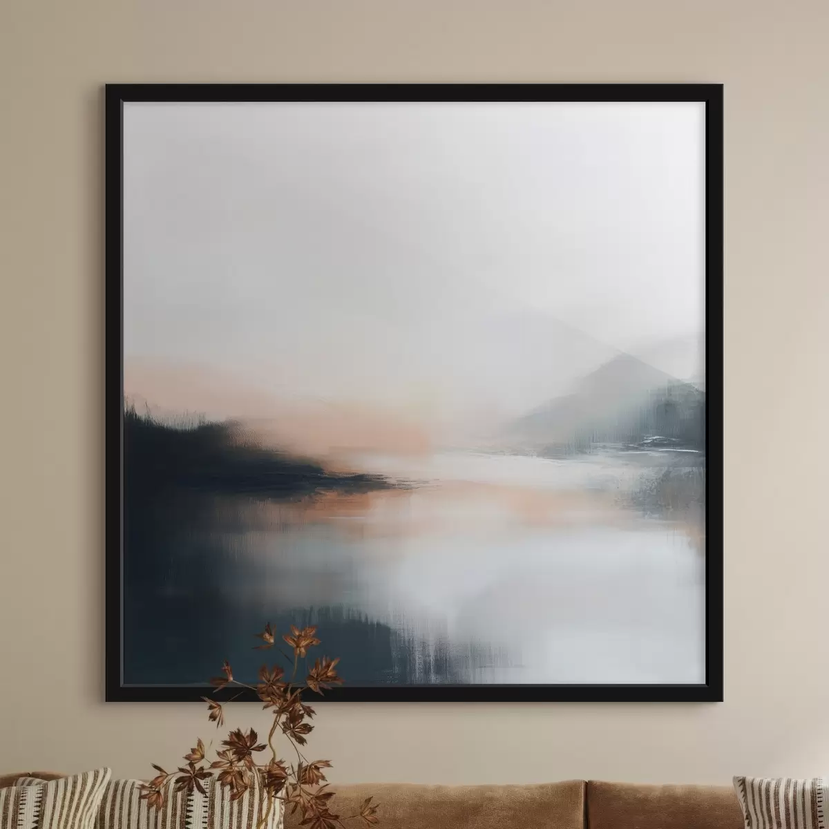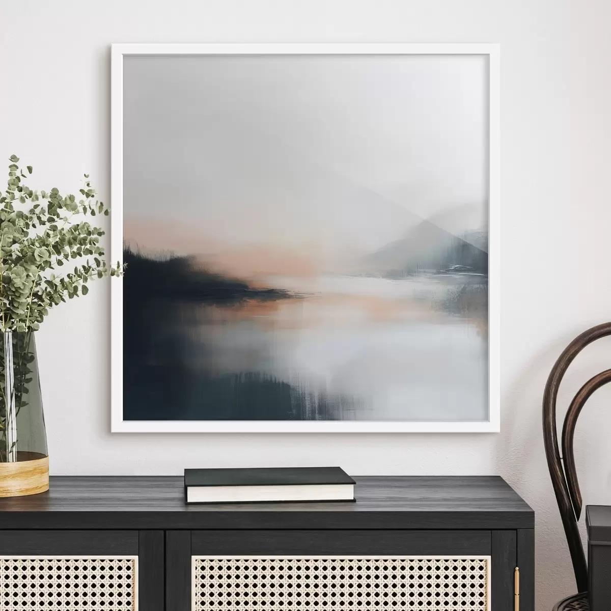 Plakatas Abstraktus rūko apgaubtas peizažas šiltų smėlio ir koralų atspalvių paletėje f48861
