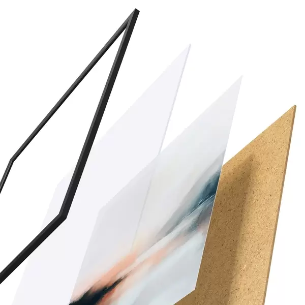 Plakatą sudaro rėmas, pleksiklas, atspausdintas vaizdas ir medžio drožlių plokštės pagrindas. Plakatą galima iš karto pakabinti ant sienos dėl kitoje pusėje esančių laikiklių.
