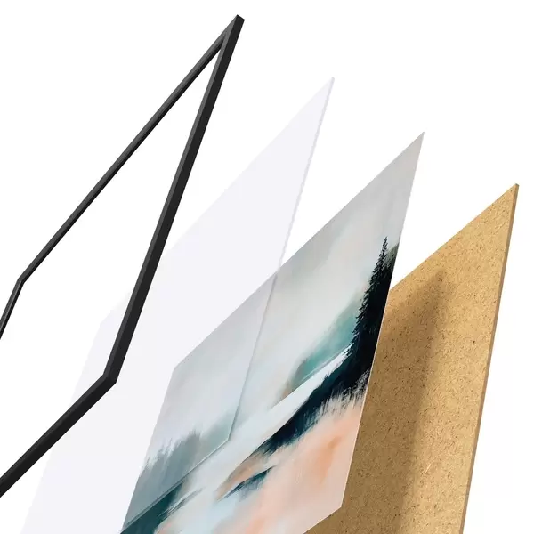 Plakatą sudaro rėmas, pleksiklas, atspausdintas vaizdas ir medžio drožlių plokštės pagrindas. Plakatą galima iš karto pakabinti ant sienos dėl kitoje pusėje esančių laikiklių.