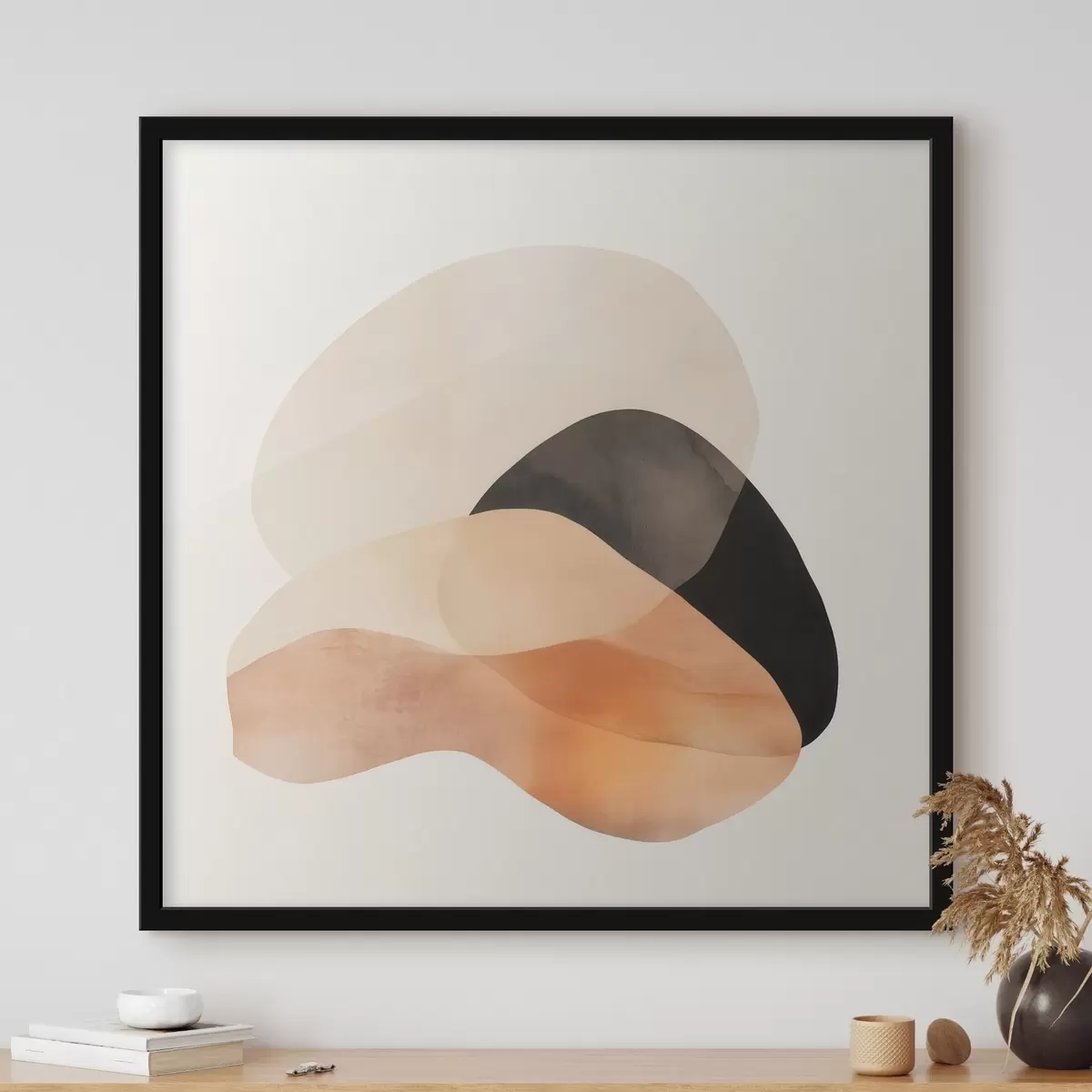 Plakatas Abstrakčios formos smėlio-persikų spalvų paletėje su tamsiais akcentais minimalistiniame stiliuje Ne f48863