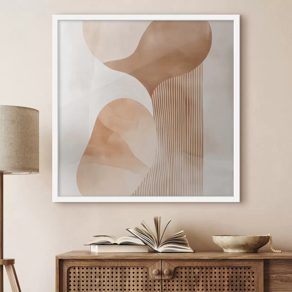 Plakatas Dekoratyvinis menas šiltų smėlio ir koralų atspalvių paletėje su akvarelės efektu f48870