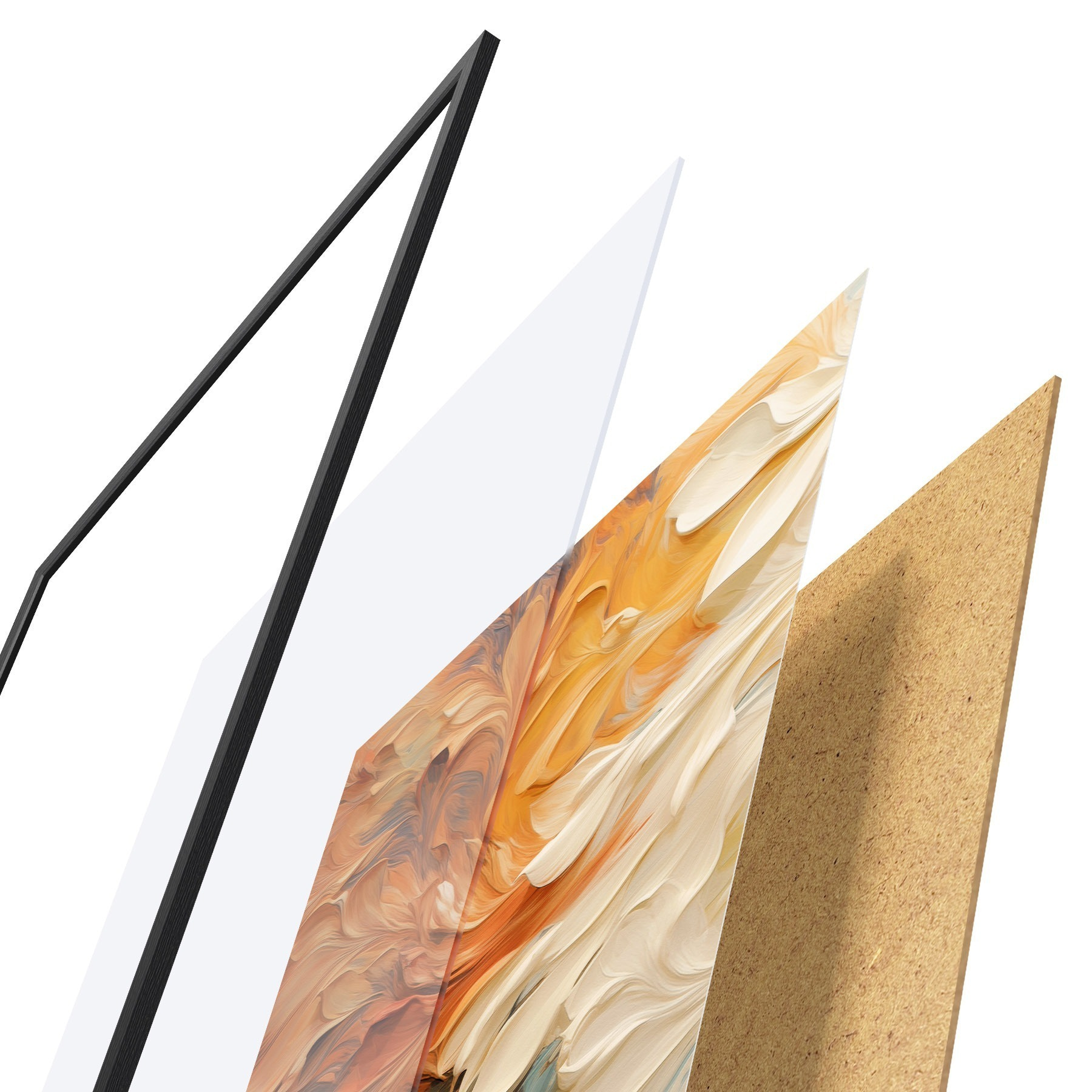 Plakatą sudaro rėmas, pleksiklas, atspausdintas vaizdas ir medžio drožlių plokštės pagrindas. Plakatą galima iš karto pakabinti ant sienos dėl kitoje pusėje esančių laikiklių.