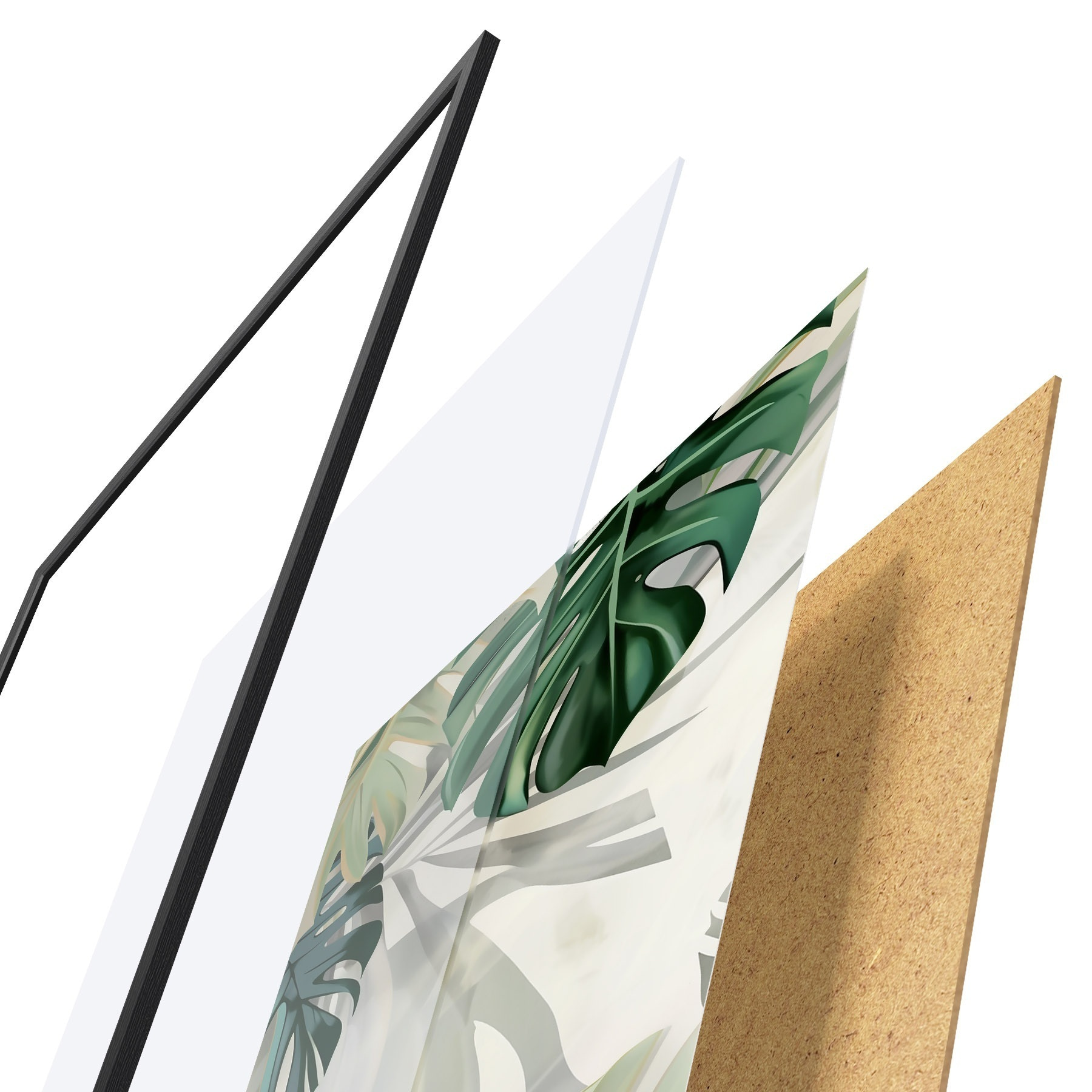 Plakatą sudaro rėmas, pleksiklas, atspausdintas vaizdas ir medžio drožlių plokštės pagrindas. Plakatą galima iš karto pakabinti ant sienos dėl kitoje pusėje esančių laikiklių.