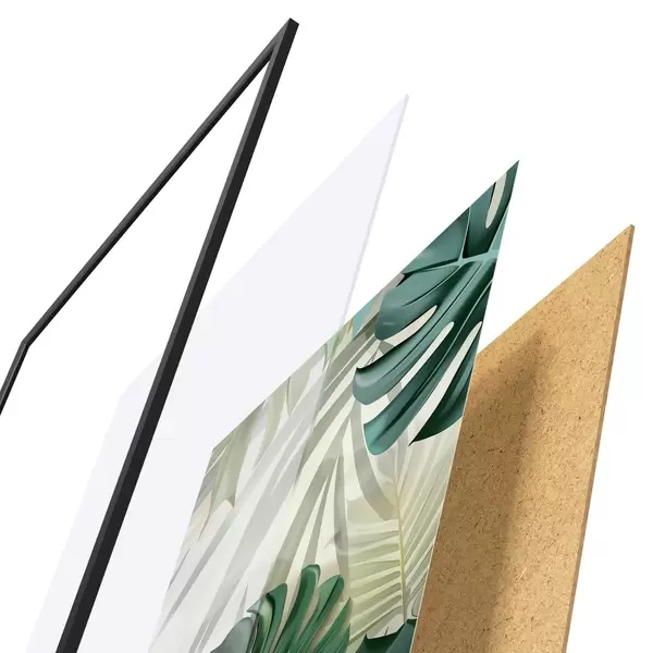 Plakatą sudaro rėmas, pleksiklas, atspausdintas vaizdas ir medžio drožlių plokštės pagrindas. Plakatą galima iš karto pakabinti ant sienos dėl kitoje pusėje esančių laikiklių.