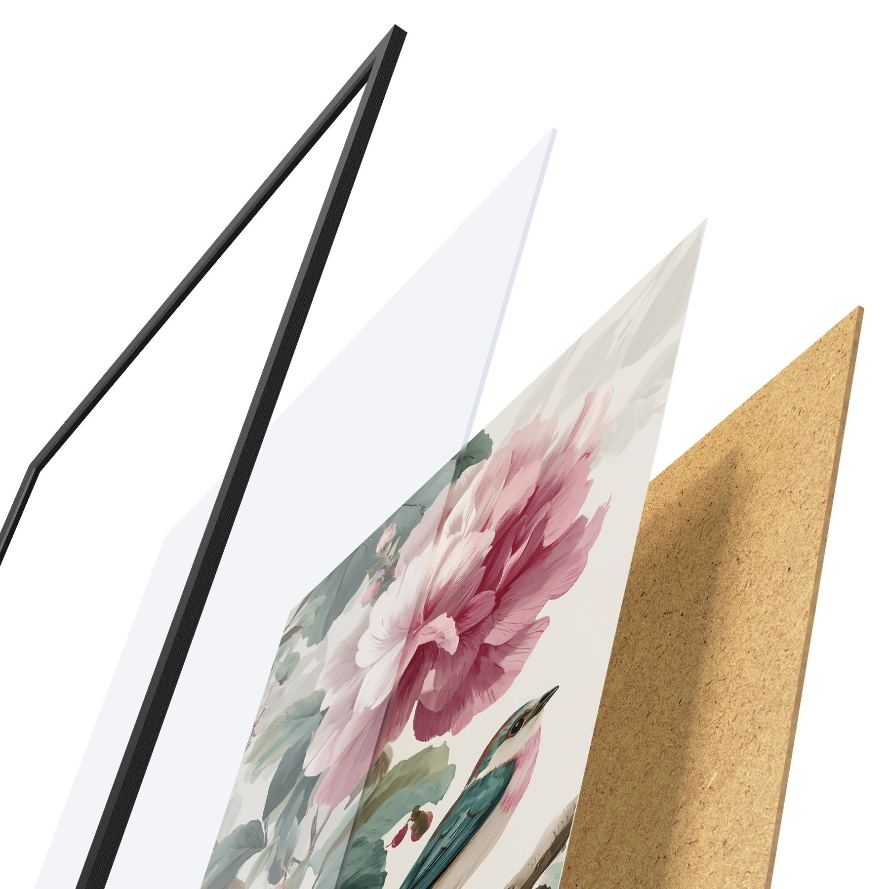 Plakatą sudaro rėmas, pleksiklas, atspausdintas vaizdas ir medžio drožlių plokštės pagrindas. Plakatą galima iš karto pakabinti ant sienos dėl kitoje pusėje esančių laikiklių.