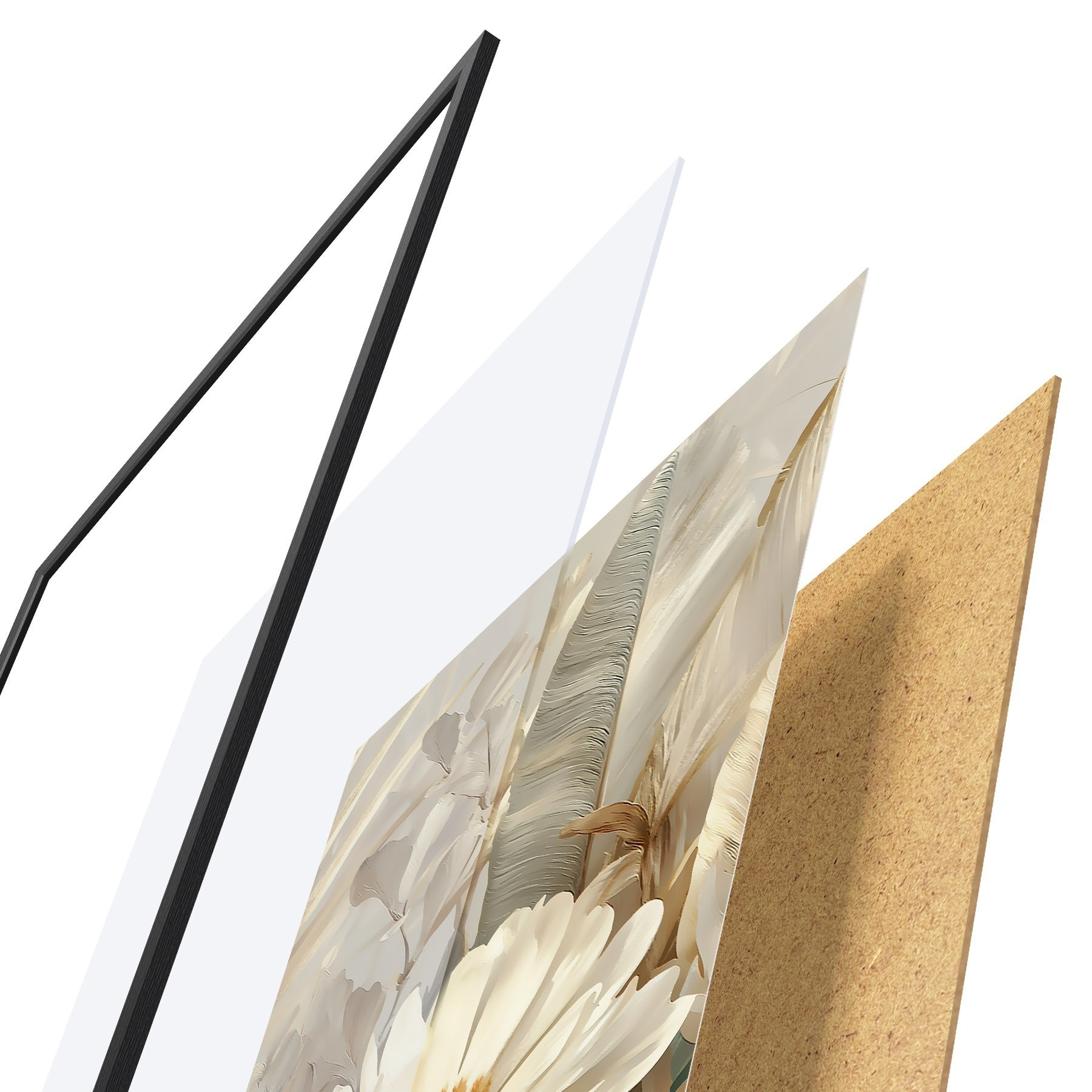 Plakatą sudaro rėmas, pleksiklas, atspausdintas vaizdas ir medžio drožlių plokštės pagrindas. Plakatą galima iš karto pakabinti ant sienos dėl kitoje pusėje esančių laikiklių.