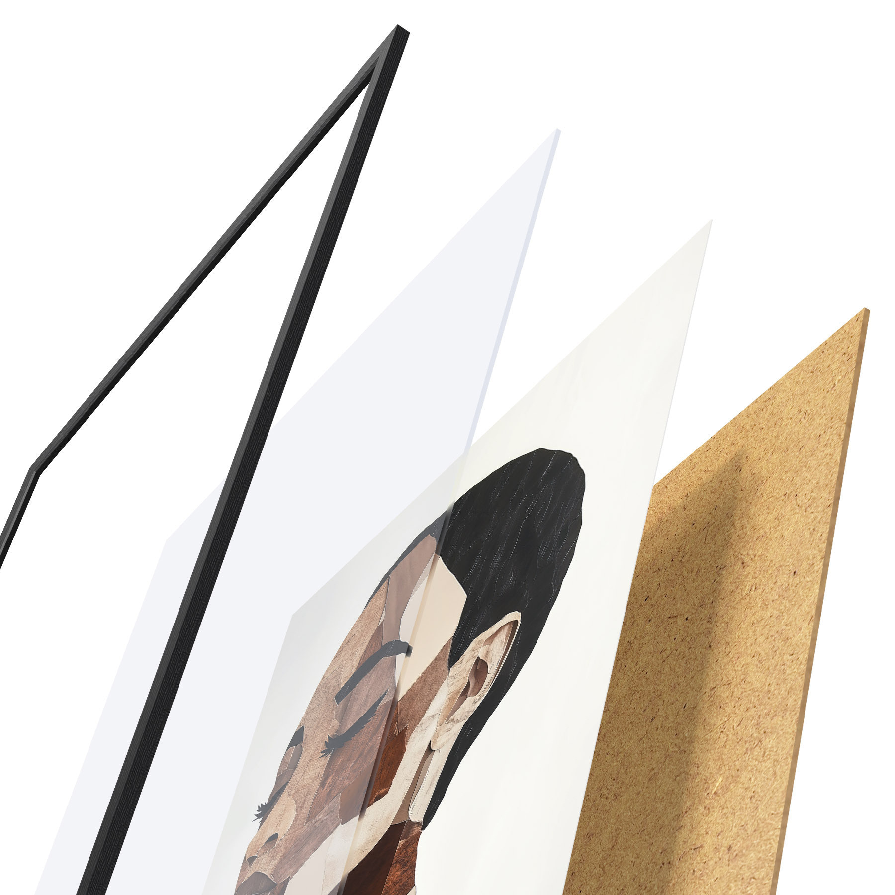 Plakatą sudaro rėmas, pleksiklas, atspausdintas vaizdas ir medžio drožlių plokštės pagrindas. Plakatą galima iš karto pakabinti ant sienos dėl kitoje pusėje esančių laikiklių.
