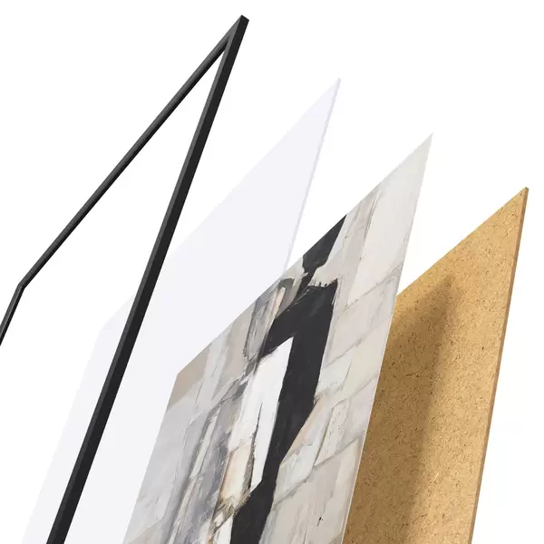 Plakatą sudaro rėmas, pleksiklas, atspausdintas vaizdas ir medžio drožlių plokštės pagrindas. Plakatą galima iš karto pakabinti ant sienos dėl kitoje pusėje esančių laikiklių.