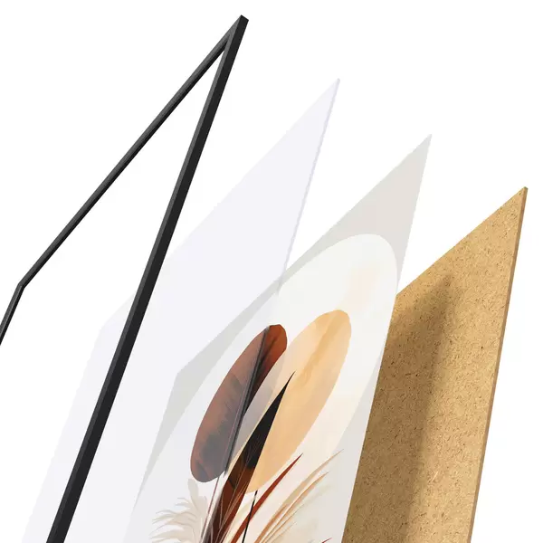 Plakatą sudaro rėmas, pleksiklas, atspausdintas vaizdas ir medžio drožlių plokštės pagrindas. Plakatą galima iš karto pakabinti ant sienos dėl kitoje pusėje esančių laikiklių.
