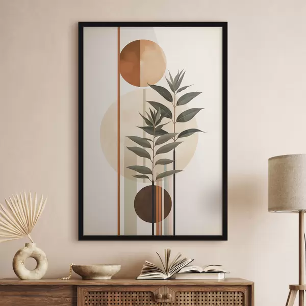 Plakatas Abstrakčios gėlės su apskritimais ir linijomis f48928