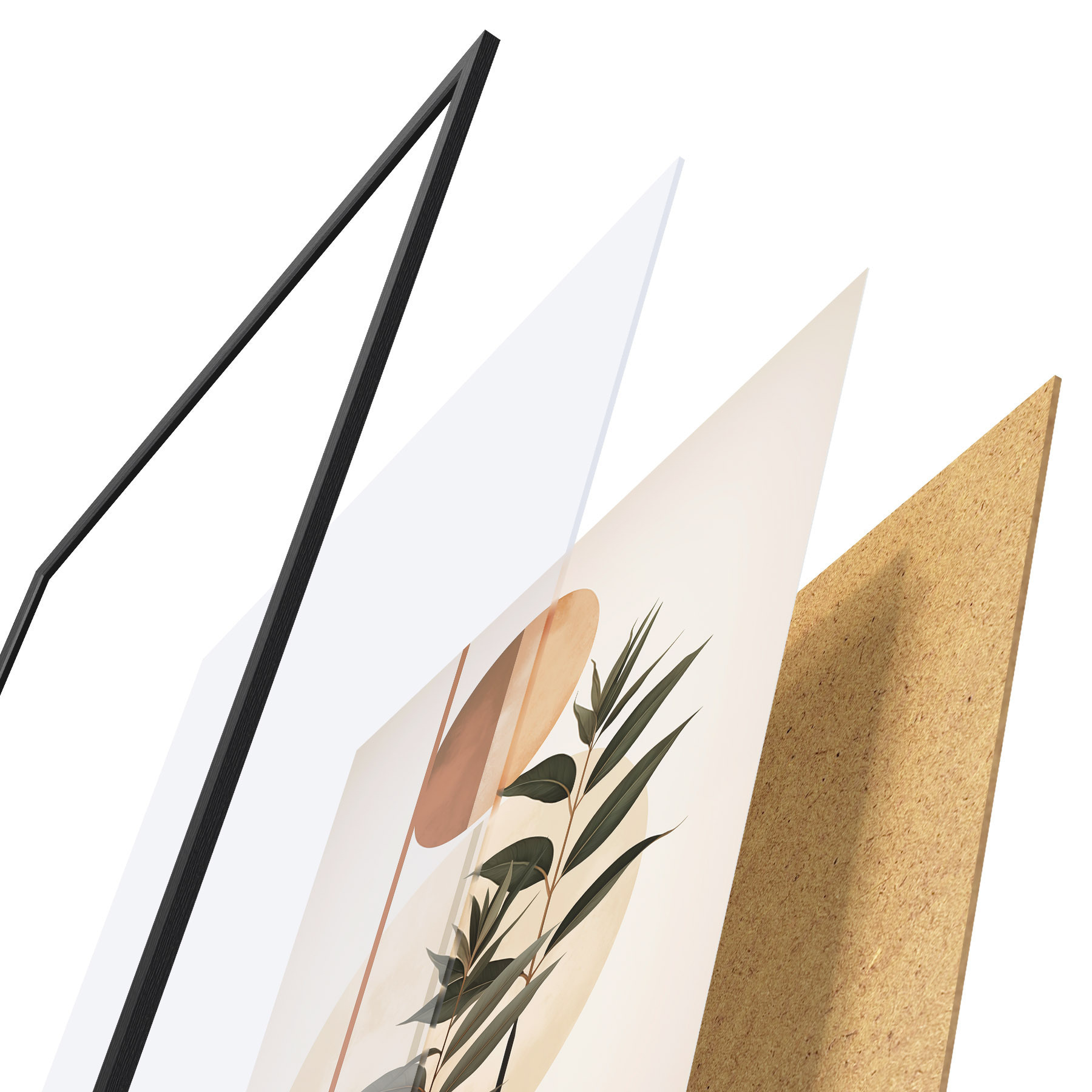 Plakatą sudaro rėmas, pleksiklas, atspausdintas vaizdas ir medžio drožlių plokštės pagrindas. Plakatą galima iš karto pakabinti ant sienos dėl kitoje pusėje esančių laikiklių.