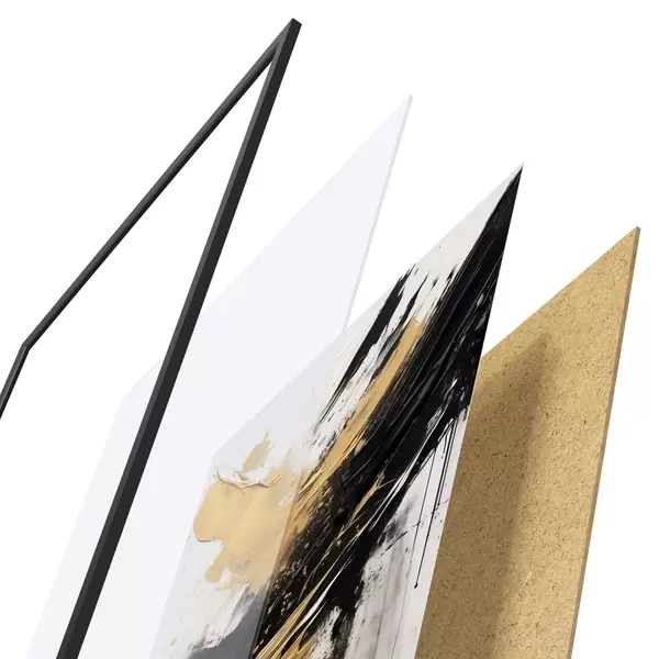 Plakatą sudaro rėmas, pleksiklas, atspausdintas vaizdas ir medžio drožlių plokštės pagrindas. Plakatą galima iš karto pakabinti ant sienos dėl kitoje pusėje esančių laikiklių.