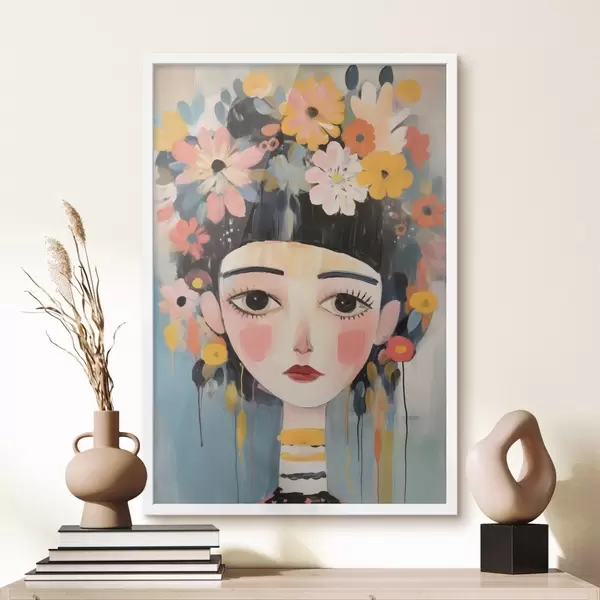 Plakatas Moteries portretas su gėlėmis plaukuose, abstraktus stilius f48935