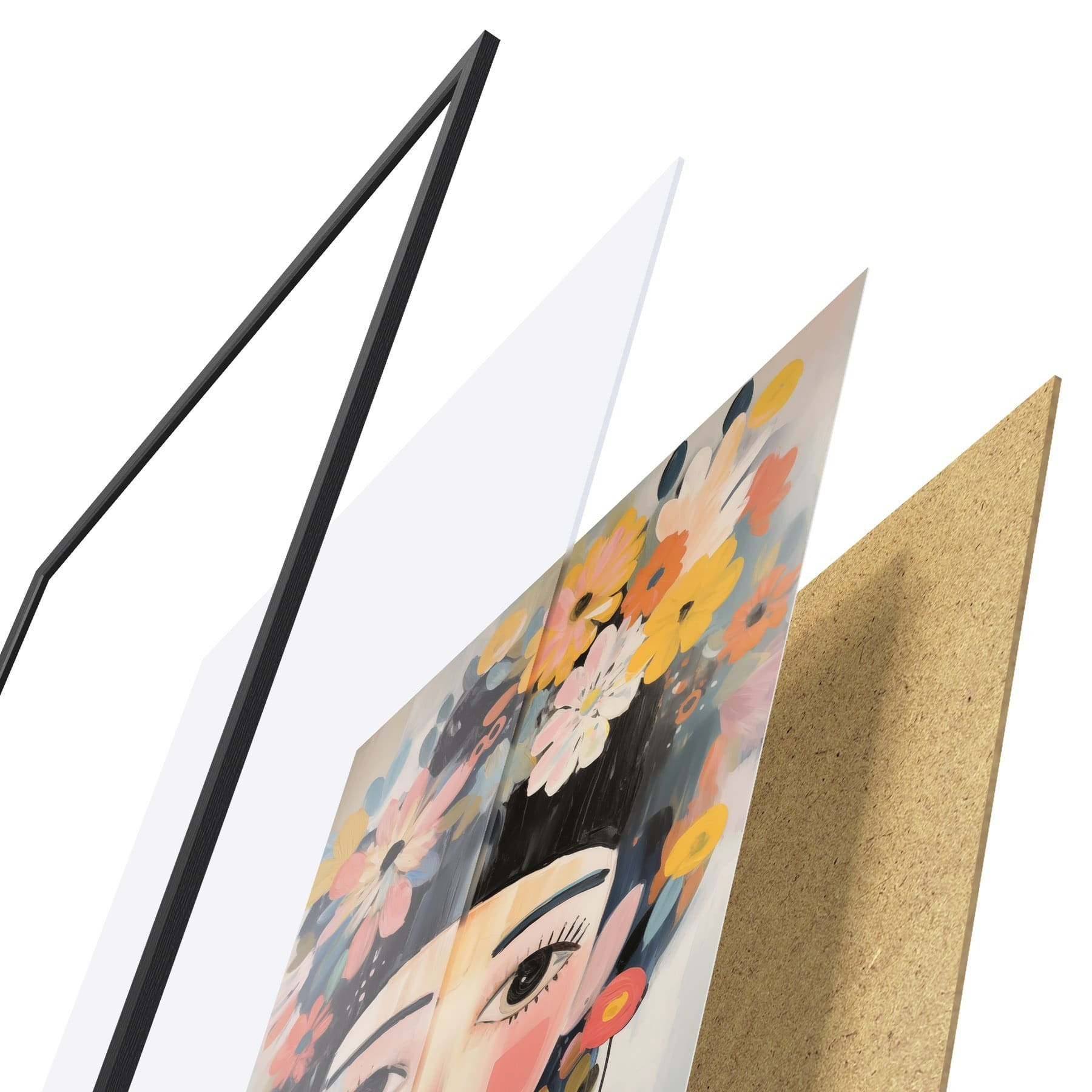 Plakatą sudaro rėmas, pleksiklas, atspausdintas vaizdas ir medžio drožlių plokštės pagrindas. Plakatą galima iš karto pakabinti ant sienos dėl kitoje pusėje esančių laikiklių.