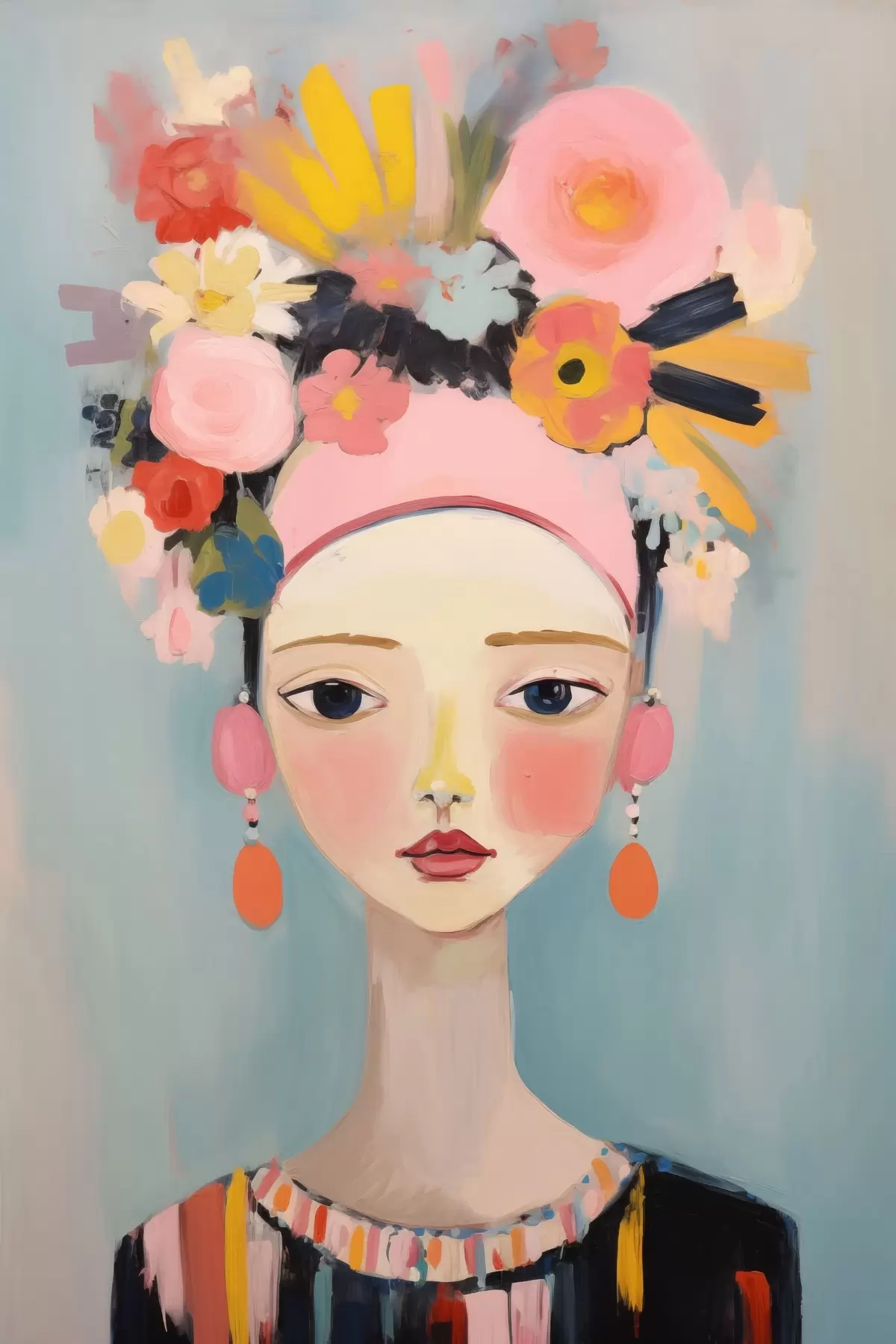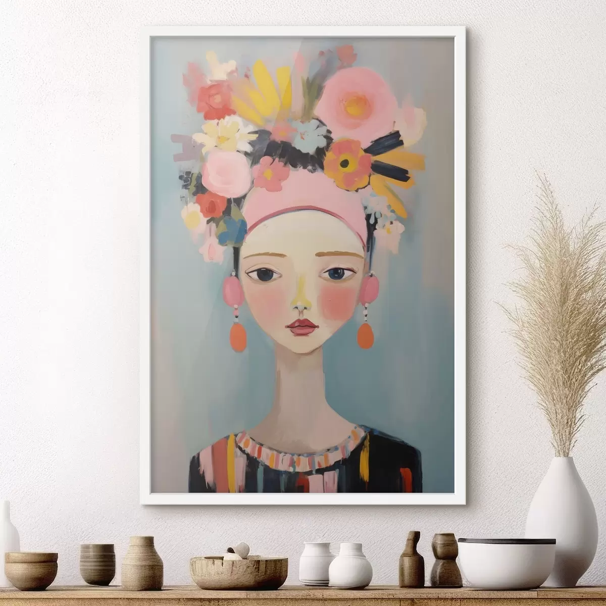 Plakatas Moteries portretas su gėlėmis plaukuose, abstraktus stilius Ne f48936