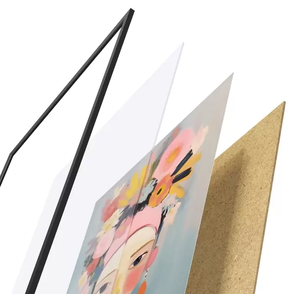Plakatą sudaro rėmas, pleksiklas, atspausdintas vaizdas ir medžio drožlių plokštės pagrindas. Plakatą galima iš karto pakabinti ant sienos dėl kitoje pusėje esančių laikiklių.