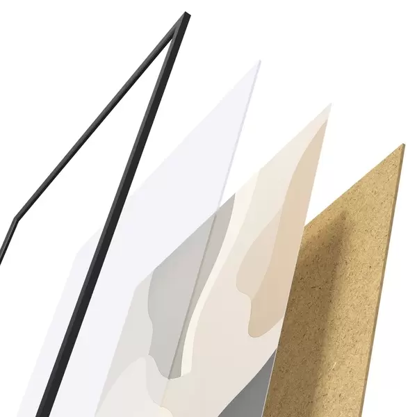 Plakatą sudaro rėmas, pleksiklas, atspausdintas vaizdas ir medžio drožlių plokštės pagrindas. Plakatą galima iš karto pakabinti ant sienos dėl kitoje pusėje esančių laikiklių.