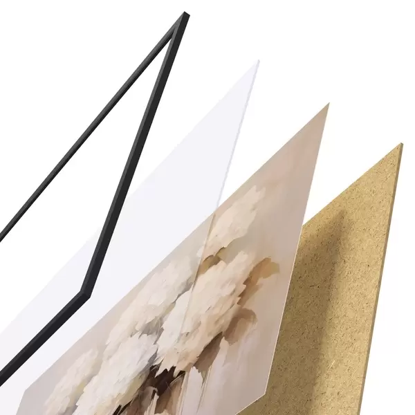 Plakatą sudaro rėmas, pleksiklas, atspausdintas vaizdas ir medžio drožlių plokštės pagrindas. Plakatą galima iš karto pakabinti ant sienos dėl kitoje pusėje esančių laikiklių.