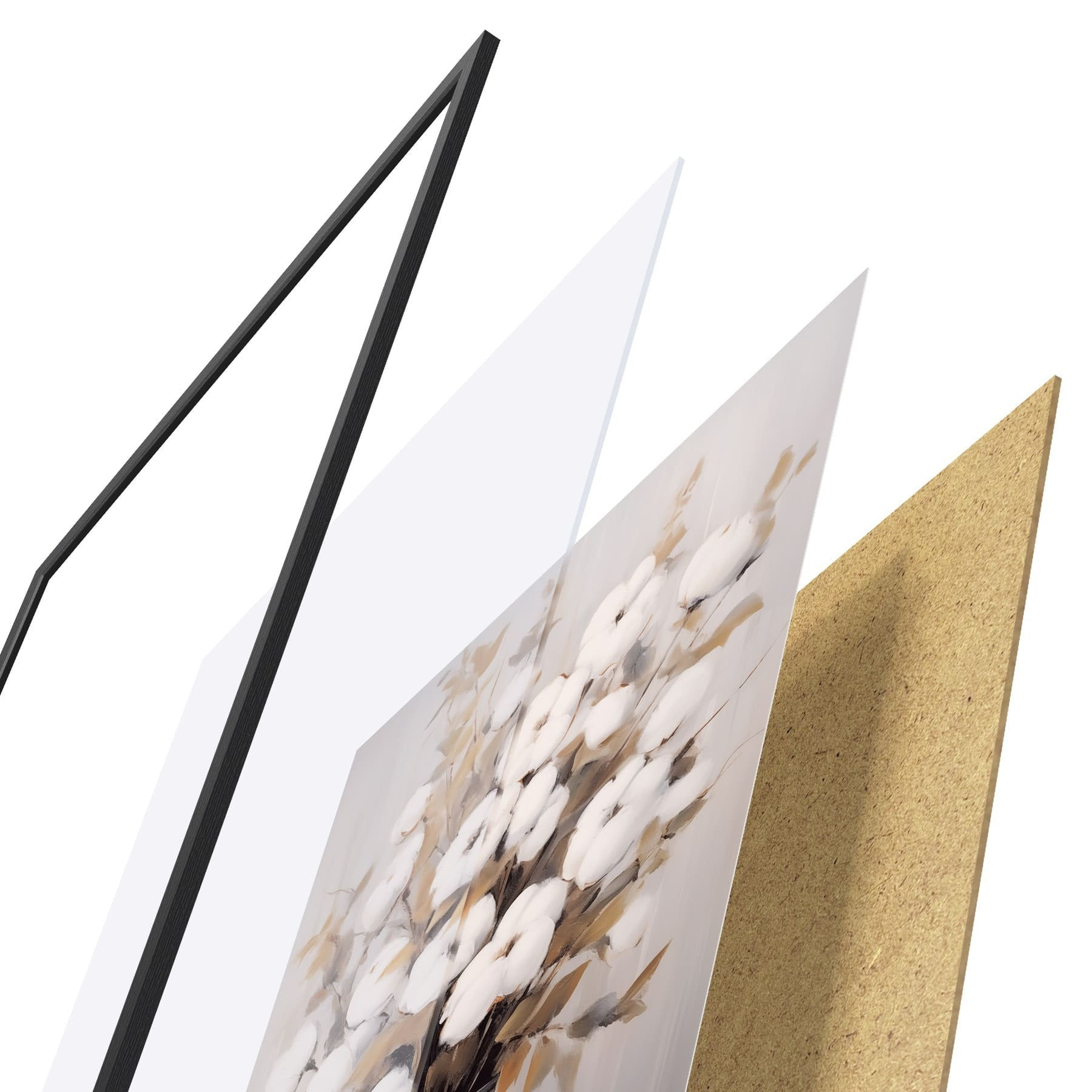 Plakatą sudaro rėmas, pleksiklas, atspausdintas vaizdas ir medžio drožlių plokštės pagrindas. Plakatą galima iš karto pakabinti ant sienos dėl kitoje pusėje esančių laikiklių.
