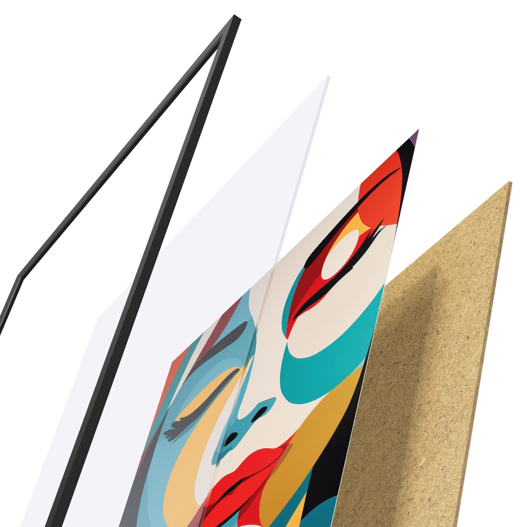 Plakatą sudaro rėmas, pleksiklas, atspausdintas vaizdas ir medžio drožlių plokštės pagrindas. Plakatą galima iš karto pakabinti ant sienos dėl kitoje pusėje esančių laikiklių.