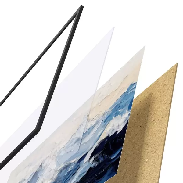 Plakatą sudaro rėmas, pleksiklas, atspausdintas vaizdas ir medžio drožlių plokštės pagrindas. Plakatą galima iš karto pakabinti ant sienos dėl kitoje pusėje esančių laikiklių.