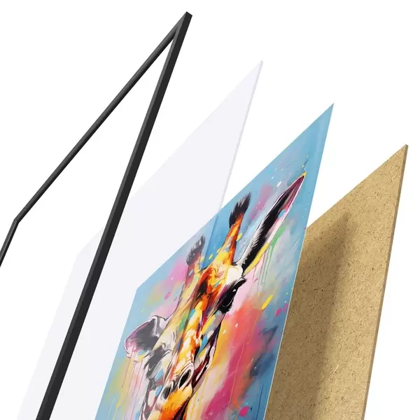 Plakatą sudaro rėmas, pleksiklas, atspausdintas vaizdas ir medžio drožlių plokštės pagrindas. Plakatą galima iš karto pakabinti ant sienos dėl kitoje pusėje esančių laikiklių.