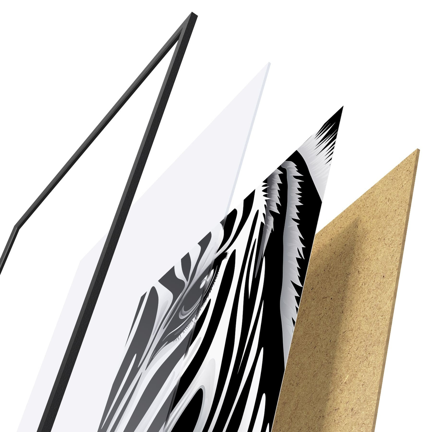 Plakatą sudaro rėmas, pleksiklas, atspausdintas vaizdas ir medžio drožlių plokštės pagrindas. Plakatą galima iš karto pakabinti ant sienos dėl kitoje pusėje esančių laikiklių.