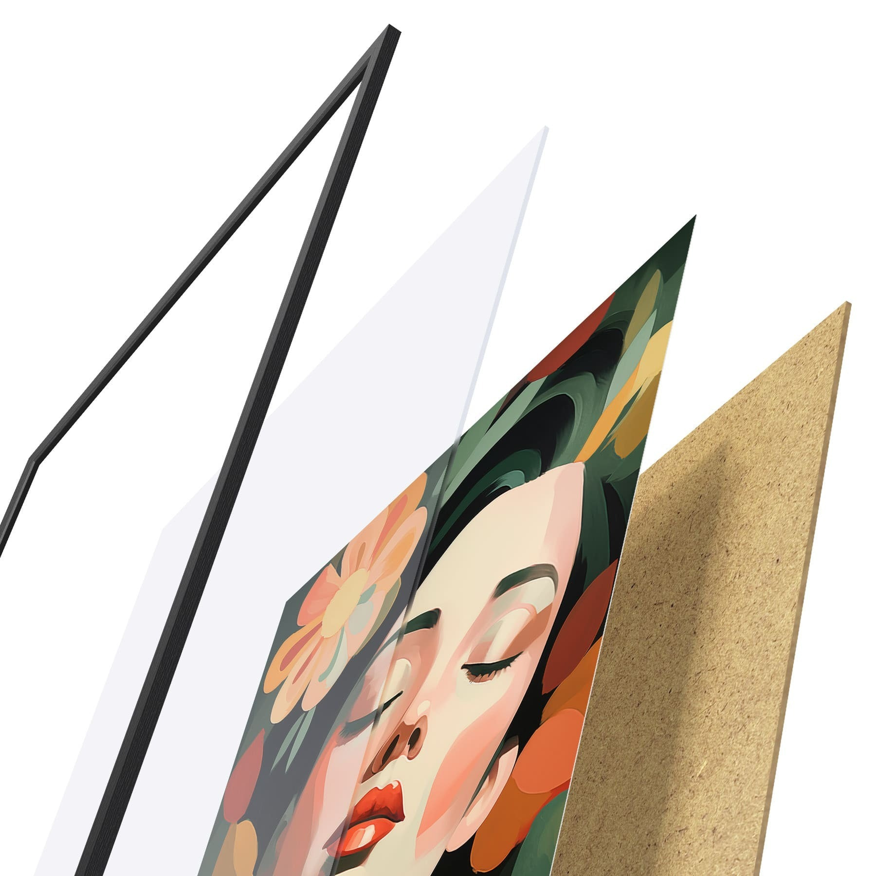 Plakatą sudaro rėmas, pleksiklas, atspausdintas vaizdas ir medžio drožlių plokštės pagrindas. Plakatą galima iš karto pakabinti ant sienos dėl kitoje pusėje esančių laikiklių.
