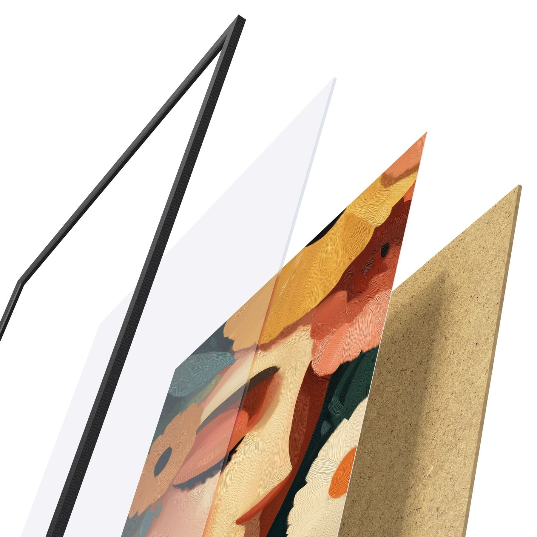 Plakatą sudaro rėmas, pleksiklas, atspausdintas vaizdas ir medžio drožlių plokštės pagrindas. Plakatą galima iš karto pakabinti ant sienos dėl kitoje pusėje esančių laikiklių.
