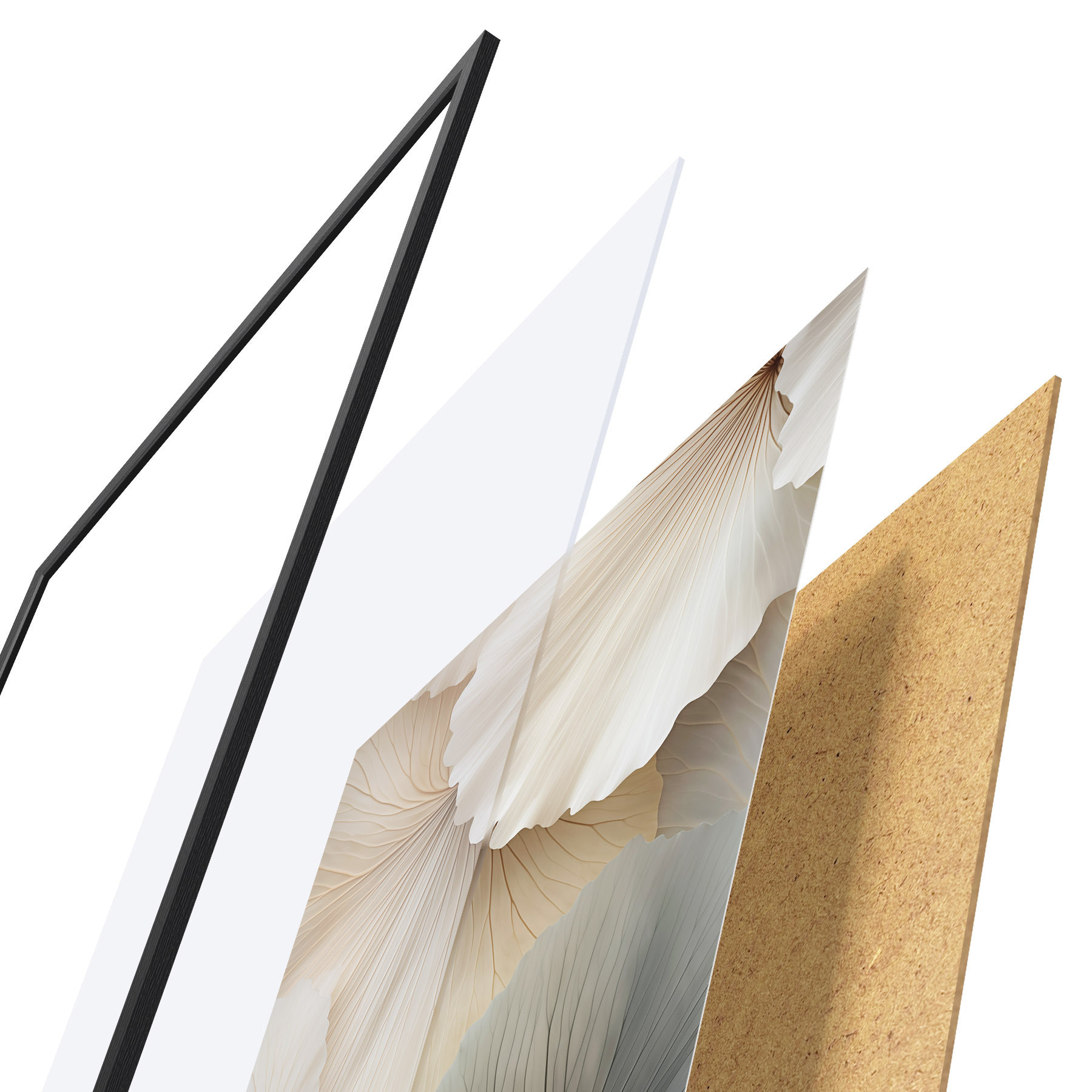 Plakatą sudaro rėmas, pleksiklas, atspausdintas vaizdas ir medžio drožlių plokštės pagrindas. Plakatą galima iš karto pakabinti ant sienos dėl kitoje pusėje esančių laikiklių.