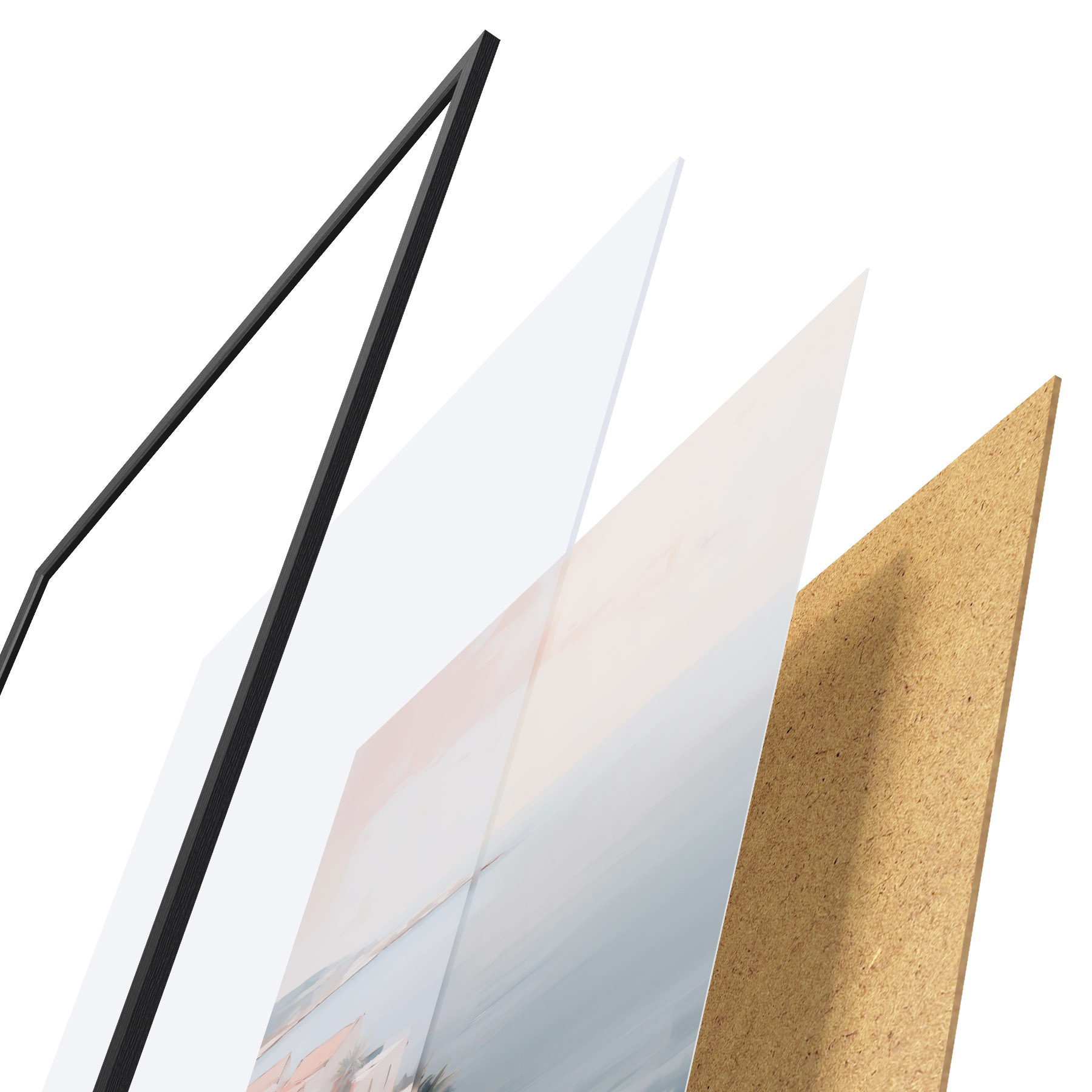 Plakatą sudaro rėmas, pleksiklas, atspausdintas vaizdas ir medžio drožlių plokštės pagrindas. Plakatą galima iš karto pakabinti ant sienos dėl kitoje pusėje esančių laikiklių.